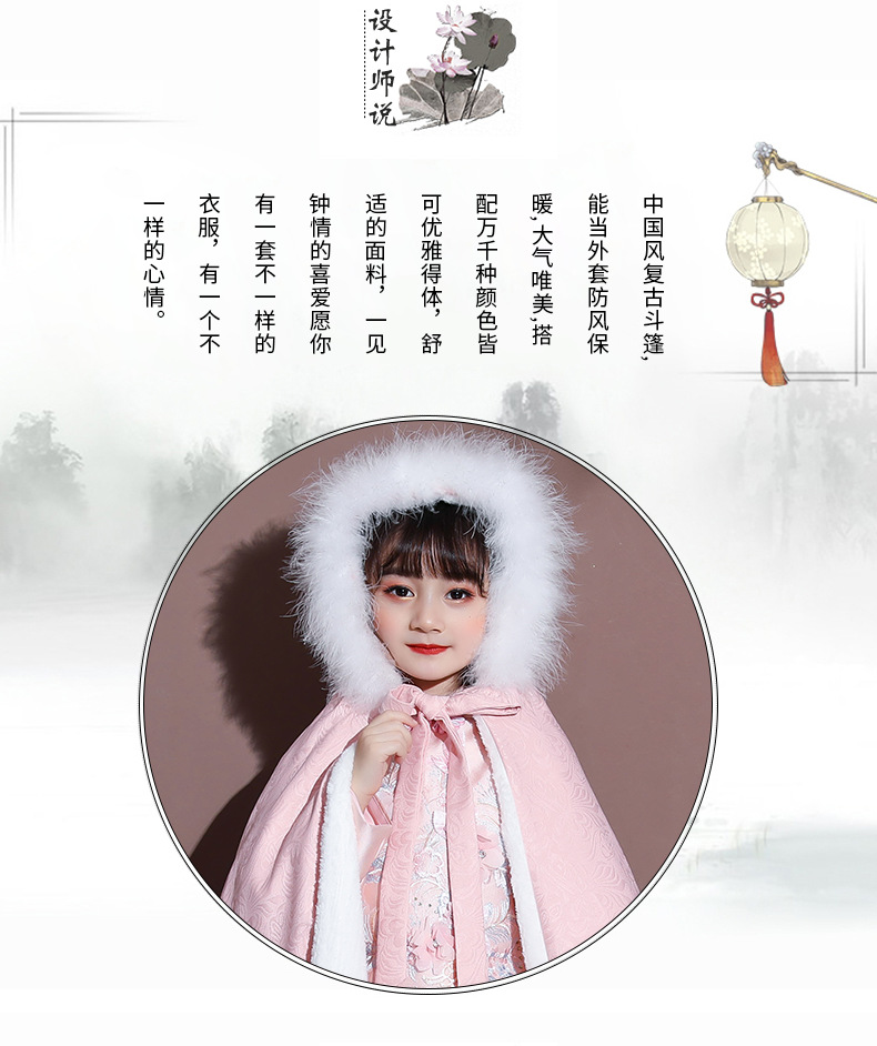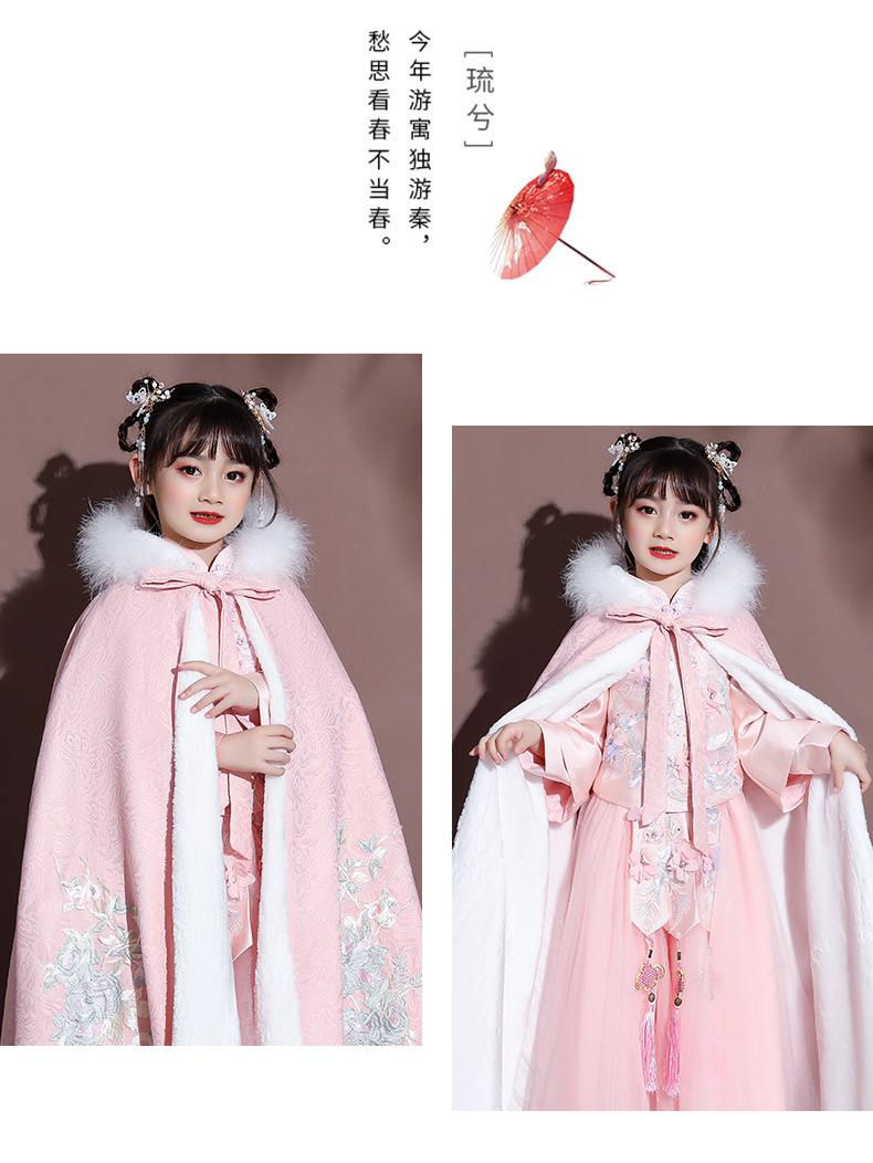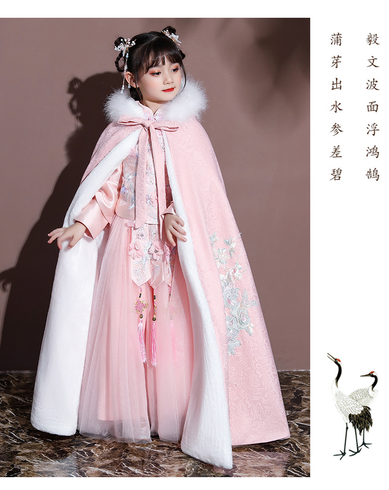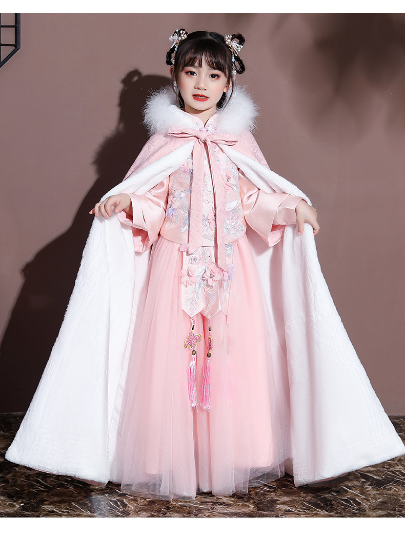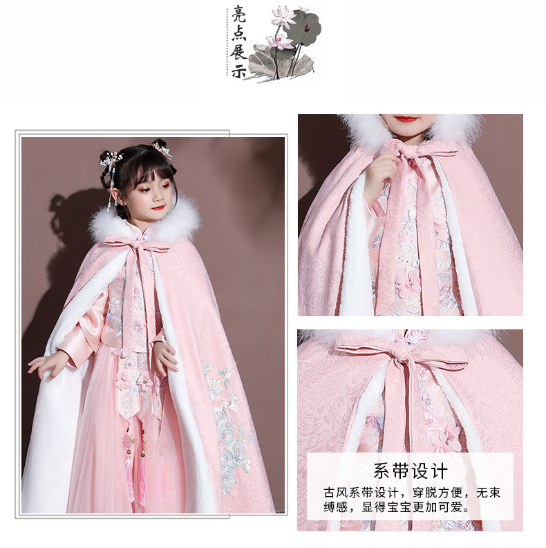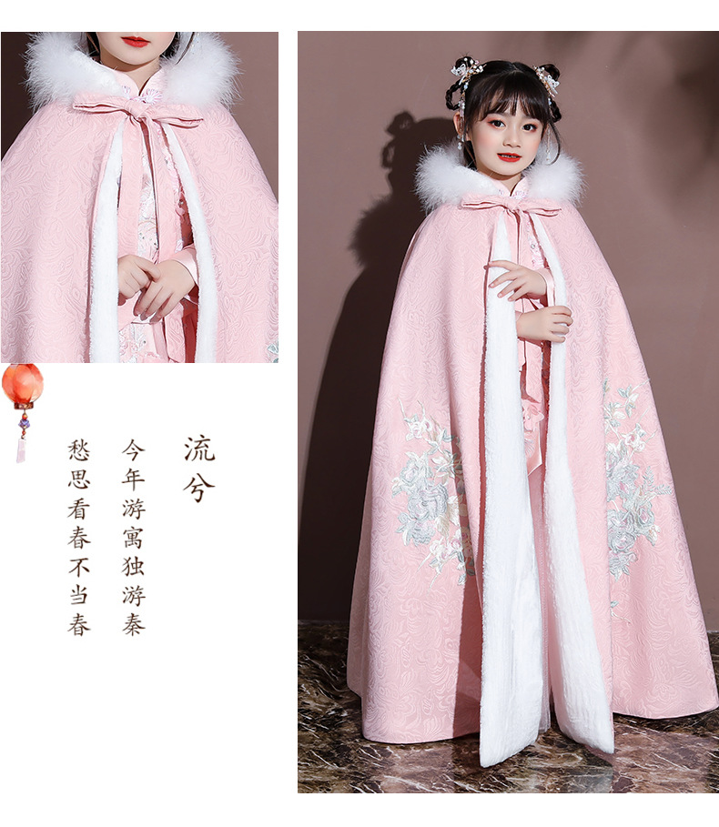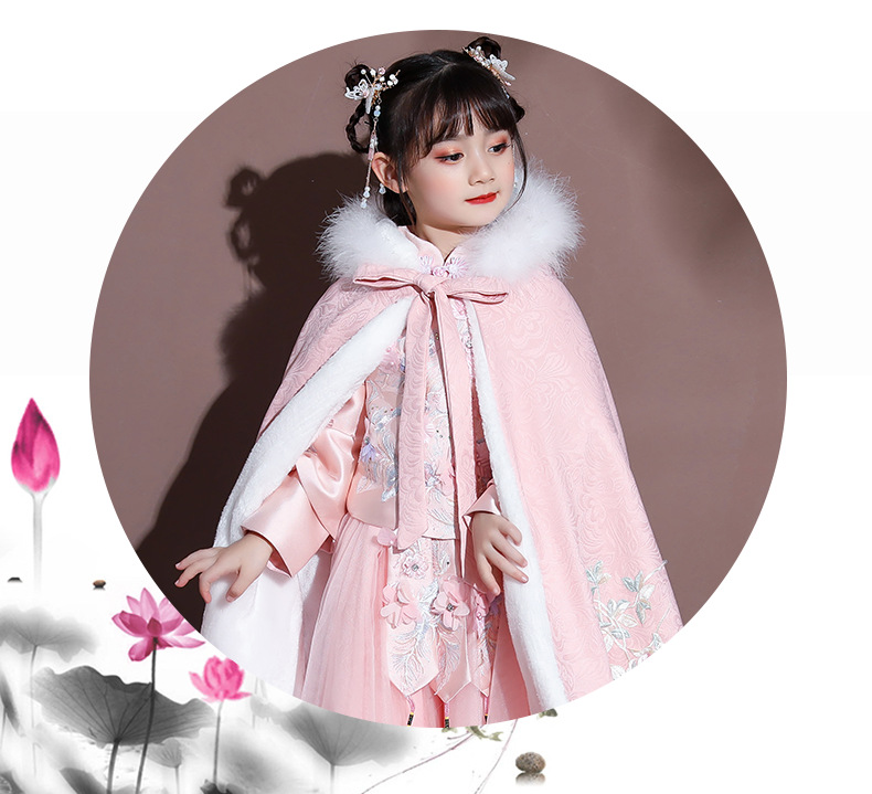 Плащ для девочек, меховый воротник, бархат, толстый