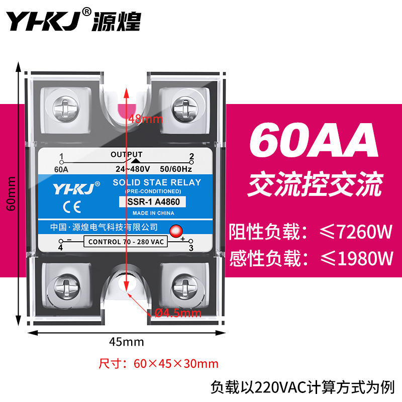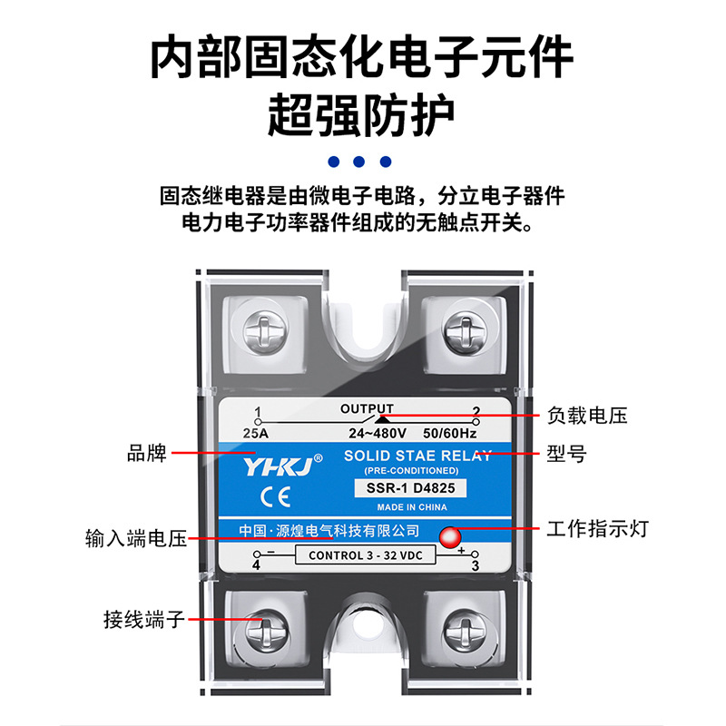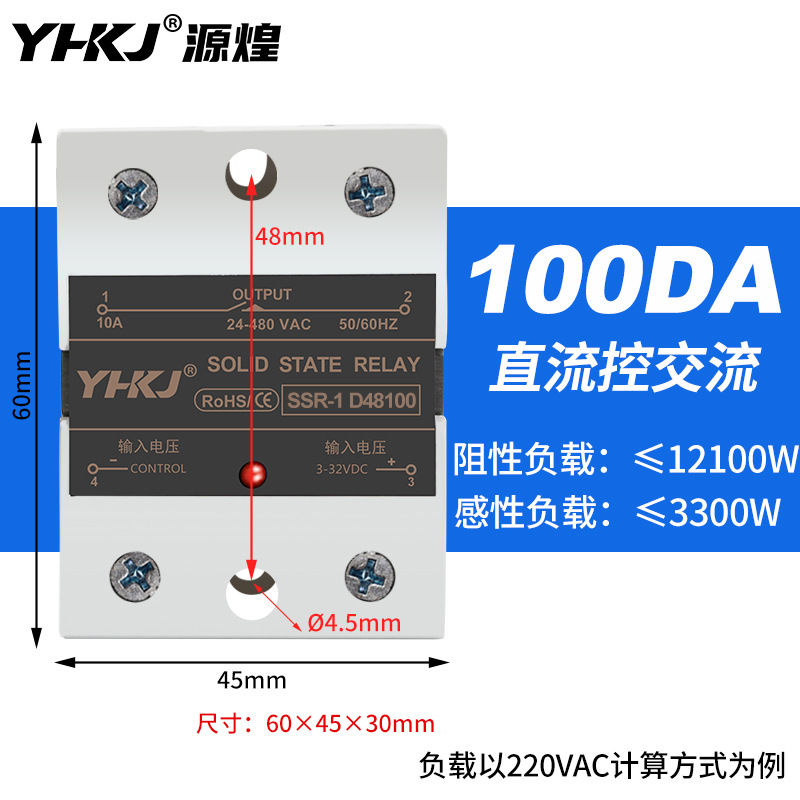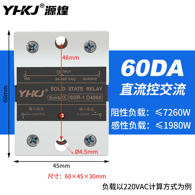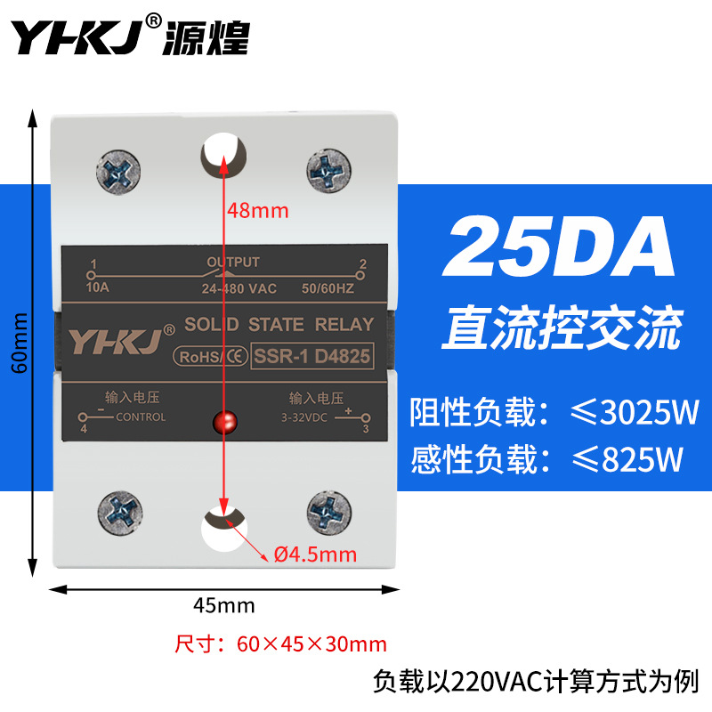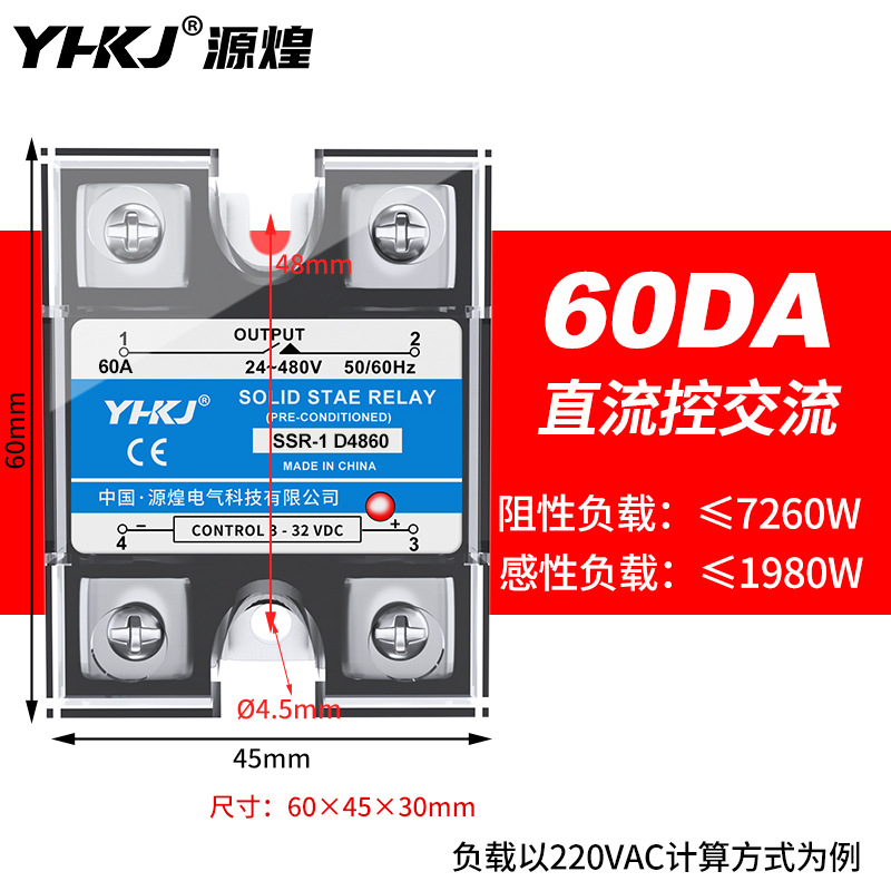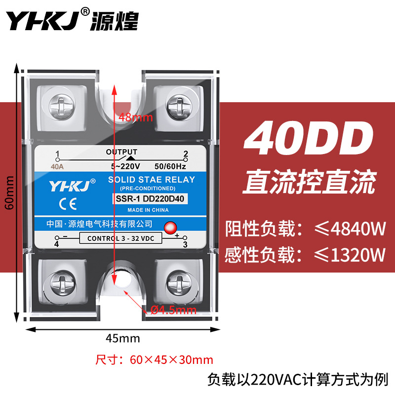 Yuanhuang однофазное твердотельное реле 220V постоянного тока SSR-40DA-25DA10A60A80A-D4840 переменного тока
