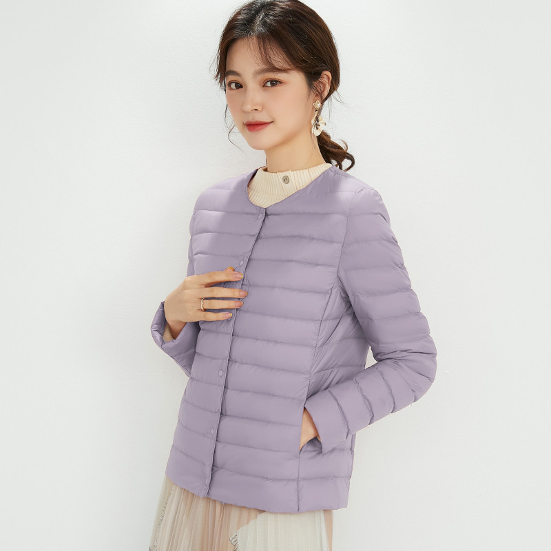 Легкий женский пуховик, новая зимняя модель 2025 года, с круглым вырезом, трансформируемый в V-образный вырез, короткий однотонный пуховик.
