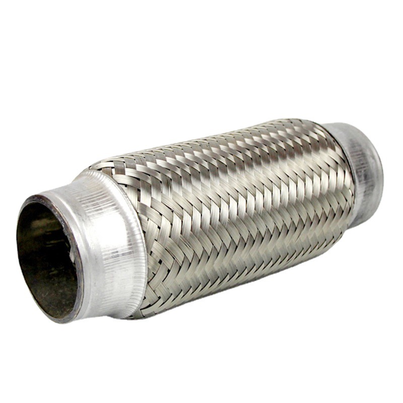 汽车排气波纹管又称汽车排气管软管,它安装于发动机排气支管和消声器之间的排气管中,使整个排气系统呈挠性联接,从而起到减振降噪、方便安装和延长排气消声系统寿命的作用。它主要用于轻型车、微型车和客车,其结构是单双层波纹管外覆钢丝网套,两端直边段外套卡环的结构,为使消声效果更佳,波纹管内部可配伸缩节或网套。材质:主要材质是不锈钢,卡套和接管材质可为不锈钢或镀铝钢。