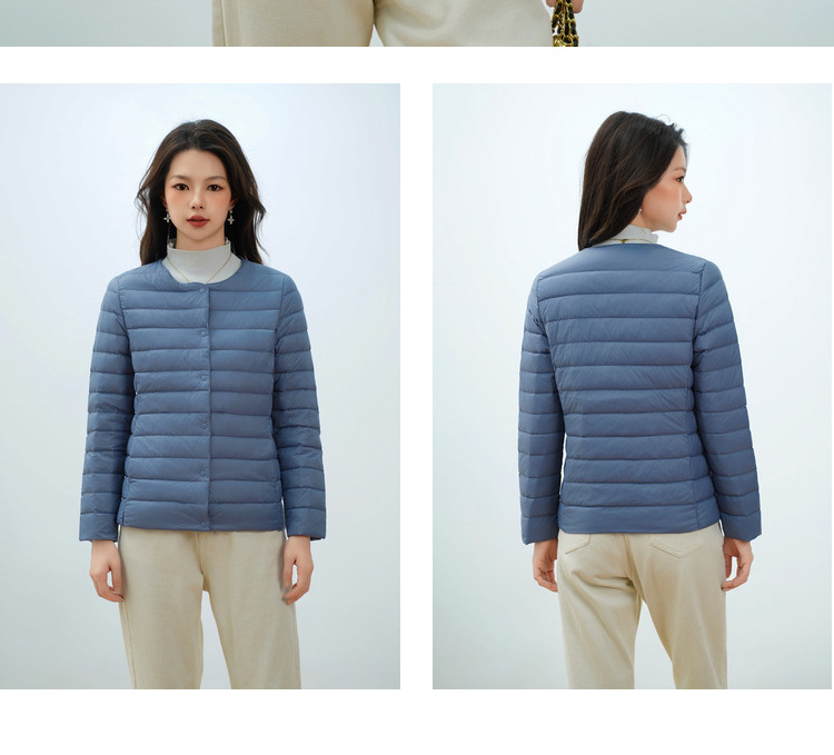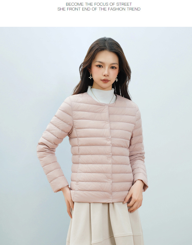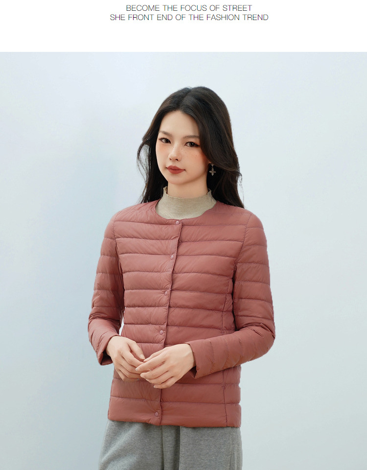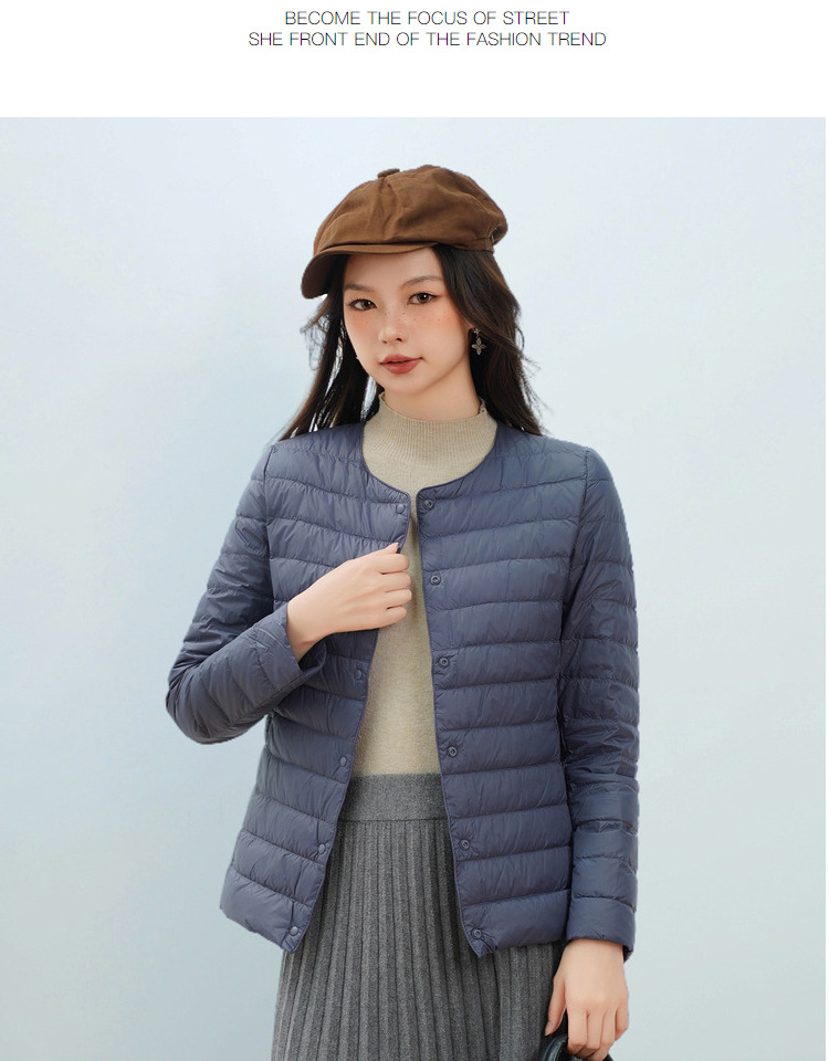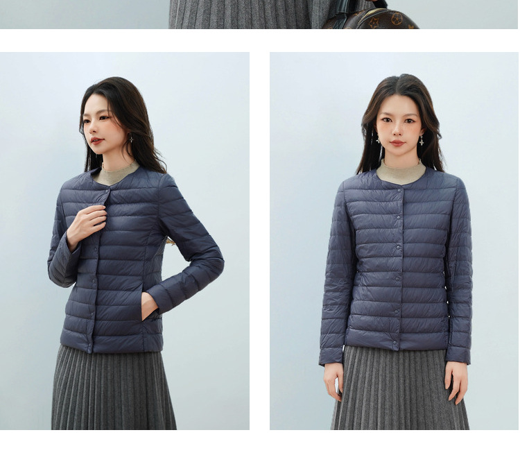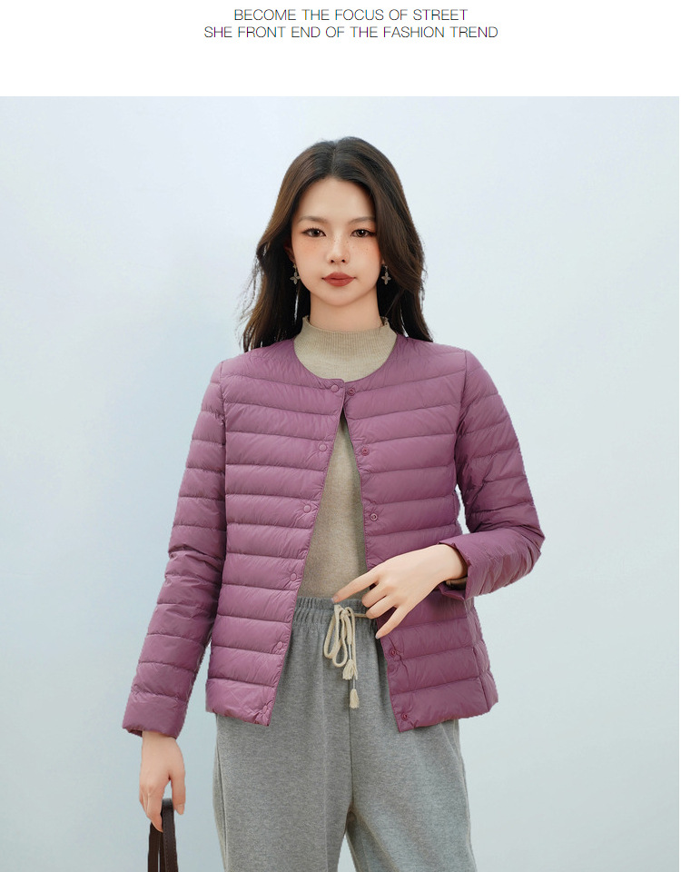 Pinghu Chi новый женский стиль новый национальный стандарт 90 бархат новый сплошной цвет женский круглый воротник V-образный воротник простой пуховик с длинными рукавами