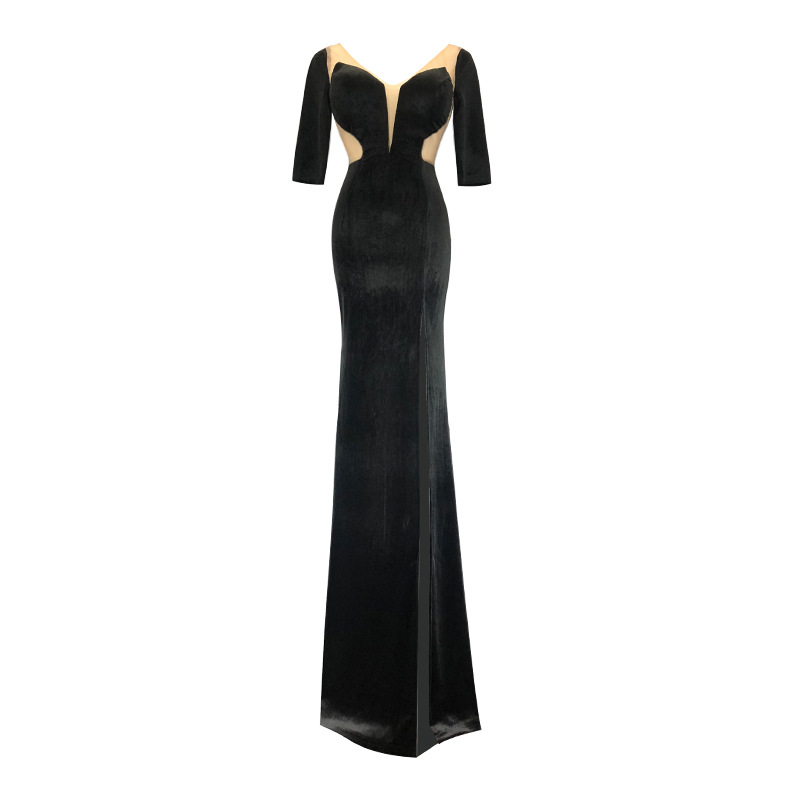 Сексуальное бархатное перспективное платье с глубоким вырезом, темпераментное длинное женское платье с открытой спиной и высоким разрезом, модель банкетного вечернего платья