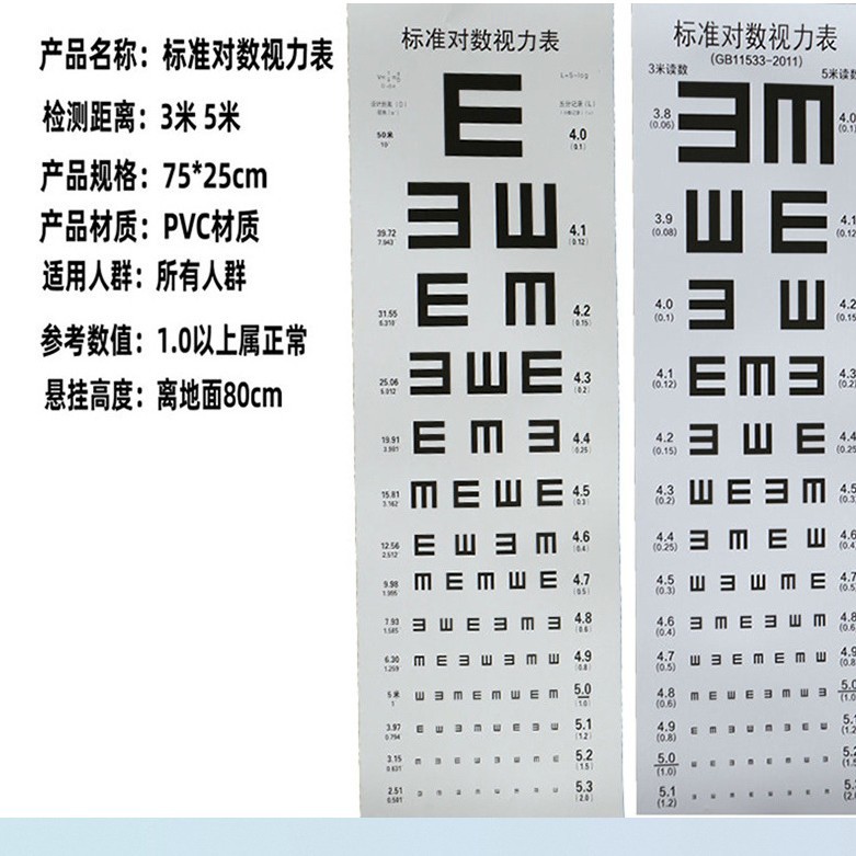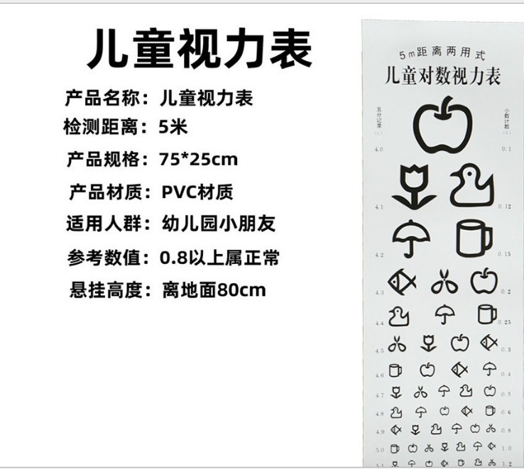 Одиночный ПВК е толстый; Двойной е толщиной ПВХ; С слово толщиной ПВХ; Детская глазная диаграмма.