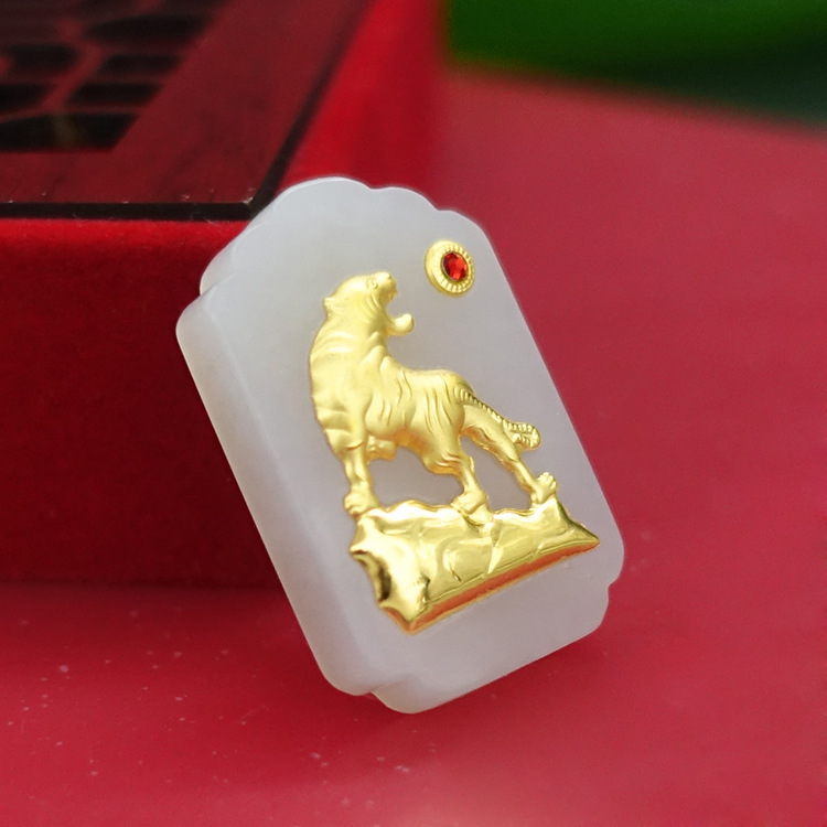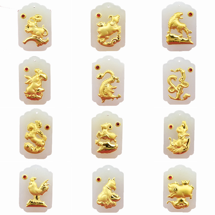 Золотой инкрустированный нефрит 3D золото Hetian нефрит очаровательный питомец 12 Зодиак кулон в этом году жизни Золото Ю Пей оптовая продажа с фабрики