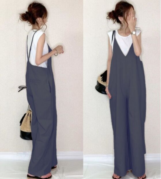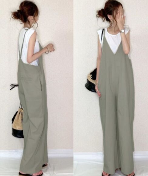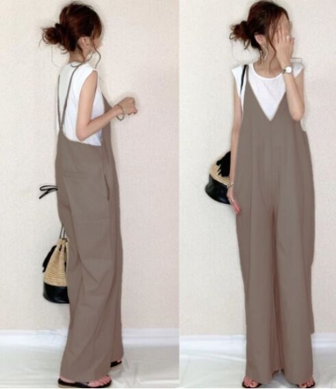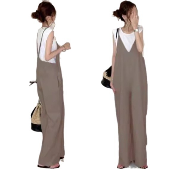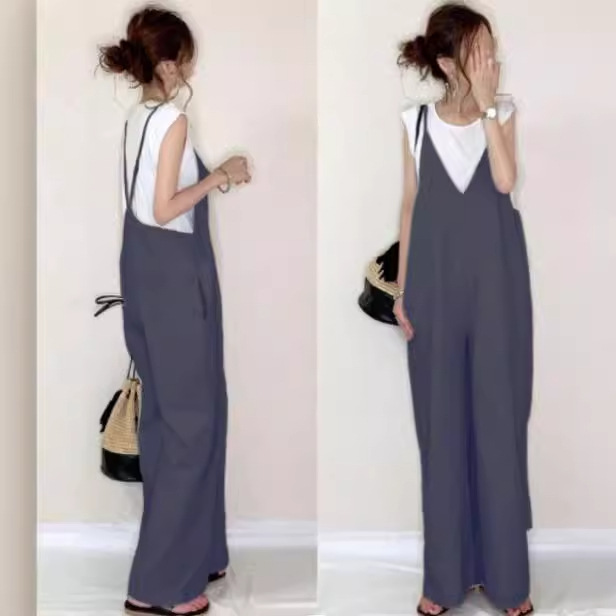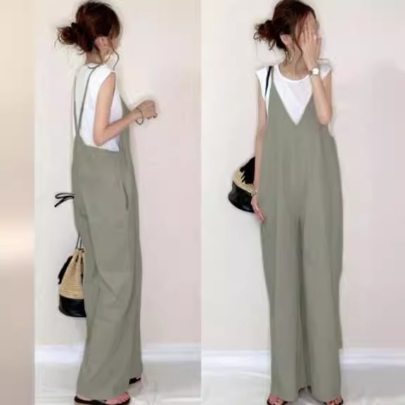 Женские комбинезоны для трансграничной торговли, лето 2026, новинка, в японском стиле, однотонные, повседневные, свободные, широкие брюки на бретелях