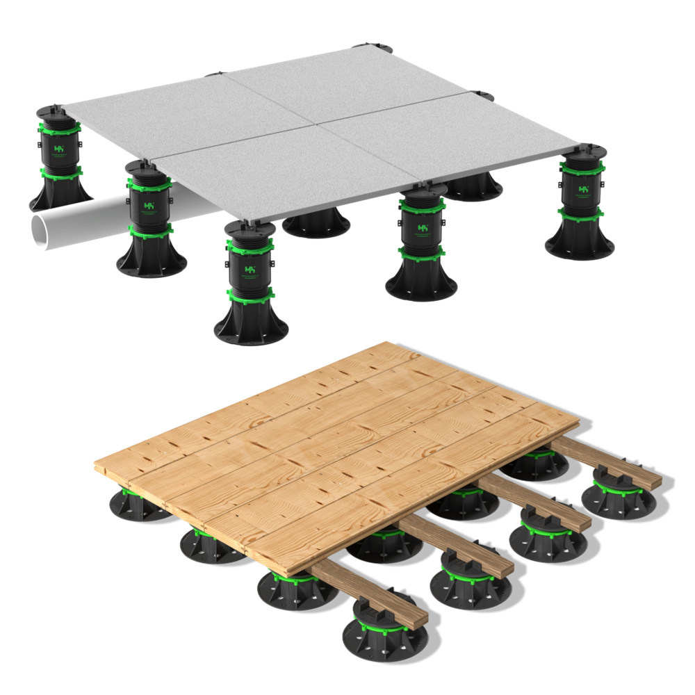 Водопадные ландшафты используют универсальные опоры для приподнятых каменных полов с регулируемыми опорами.