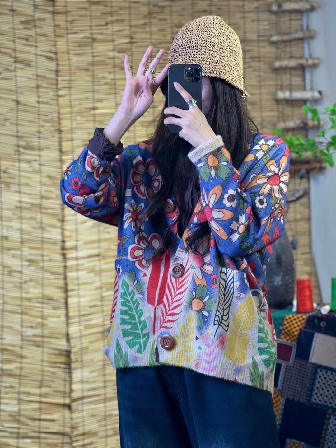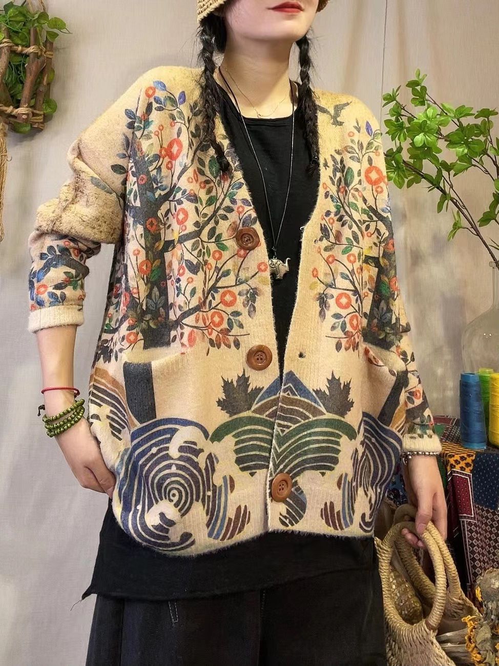 Женский вязаный свитер из вельвета под норку 2024 года, оптом, высококачественная модная кардиган-кофта с принтом, V-образный вырез, осенняя коллекция