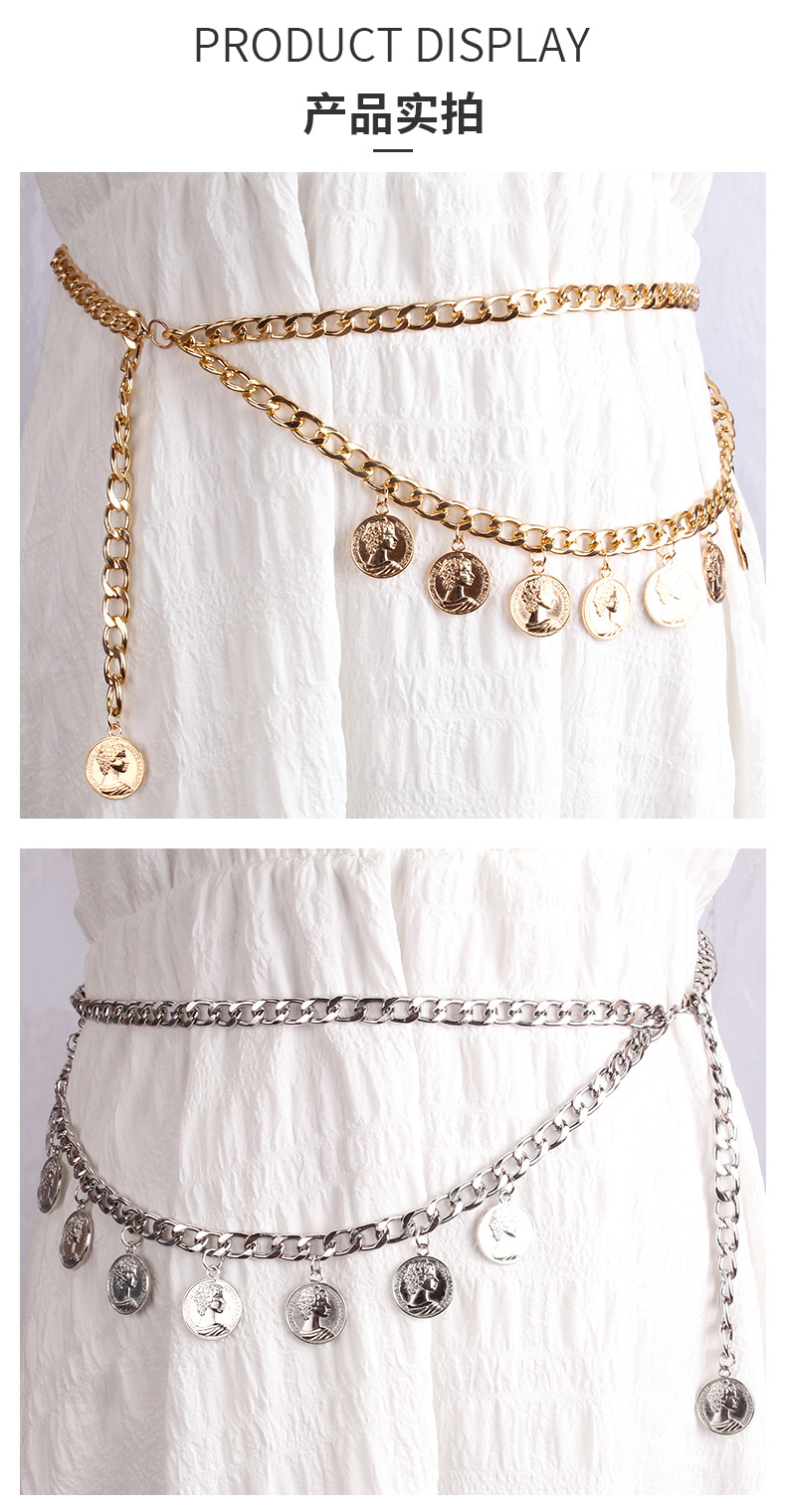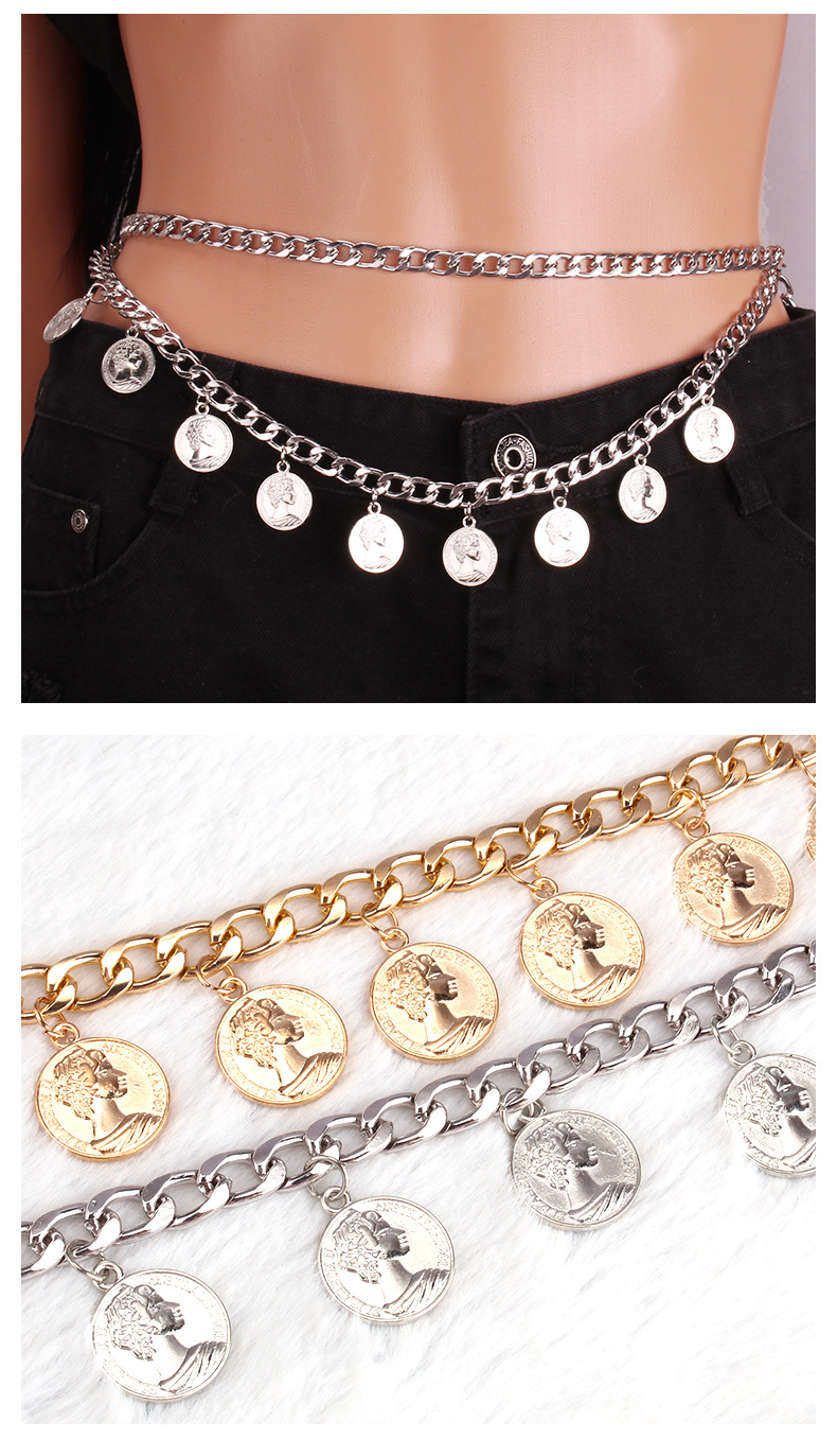 Европейская и американская трансграничная Горячая продажа ретро-портретная монета декоративная подвеска цепочка для тела сексуальный холодный стиль простая поясная цепочка для женщин