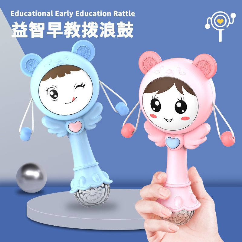 Жевательная погремушка для новорожденных 3-6 месяцев, ручной барабан, музыкальная палочка, игрушка-погремушка для детей 0-1 года