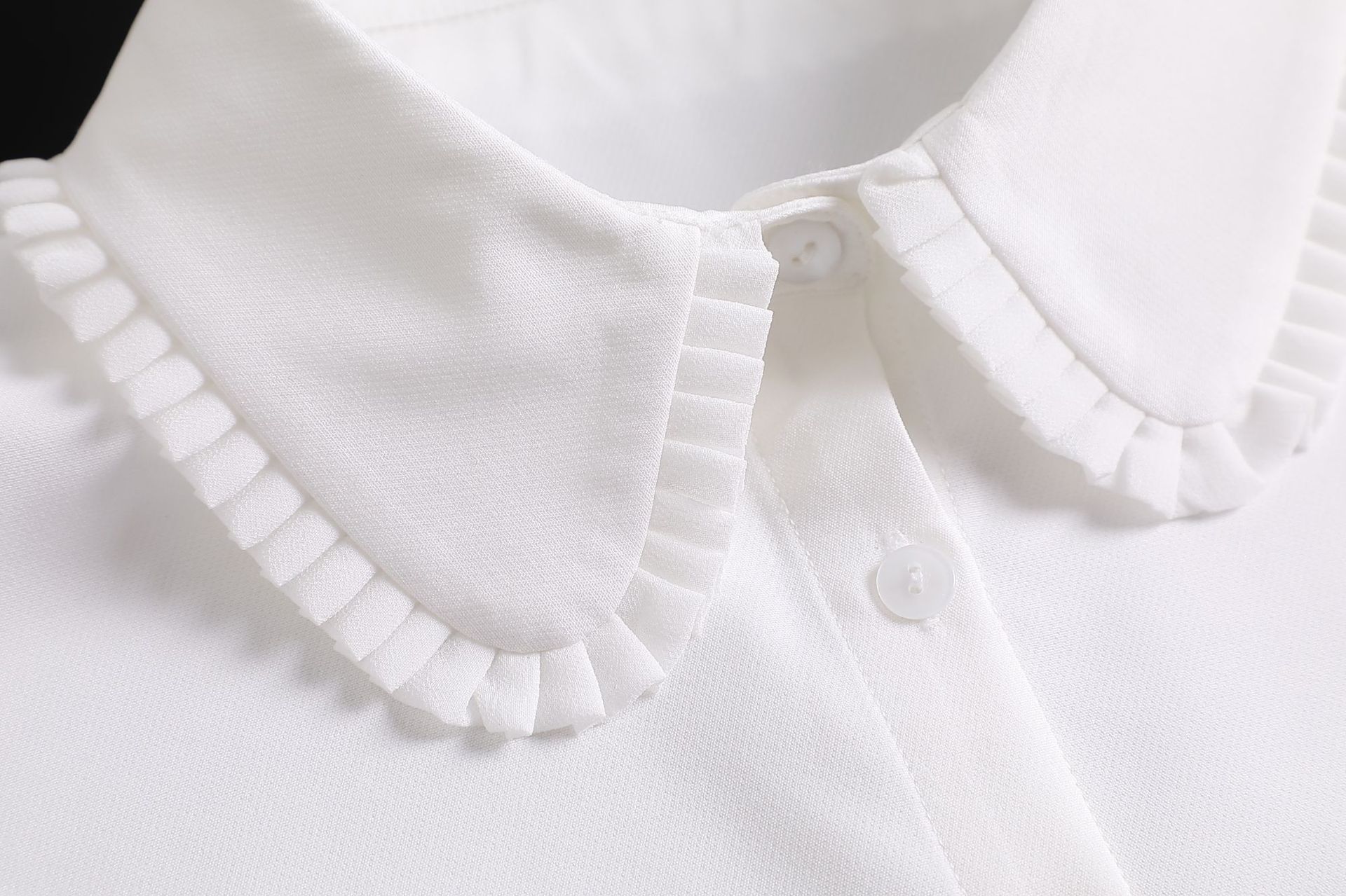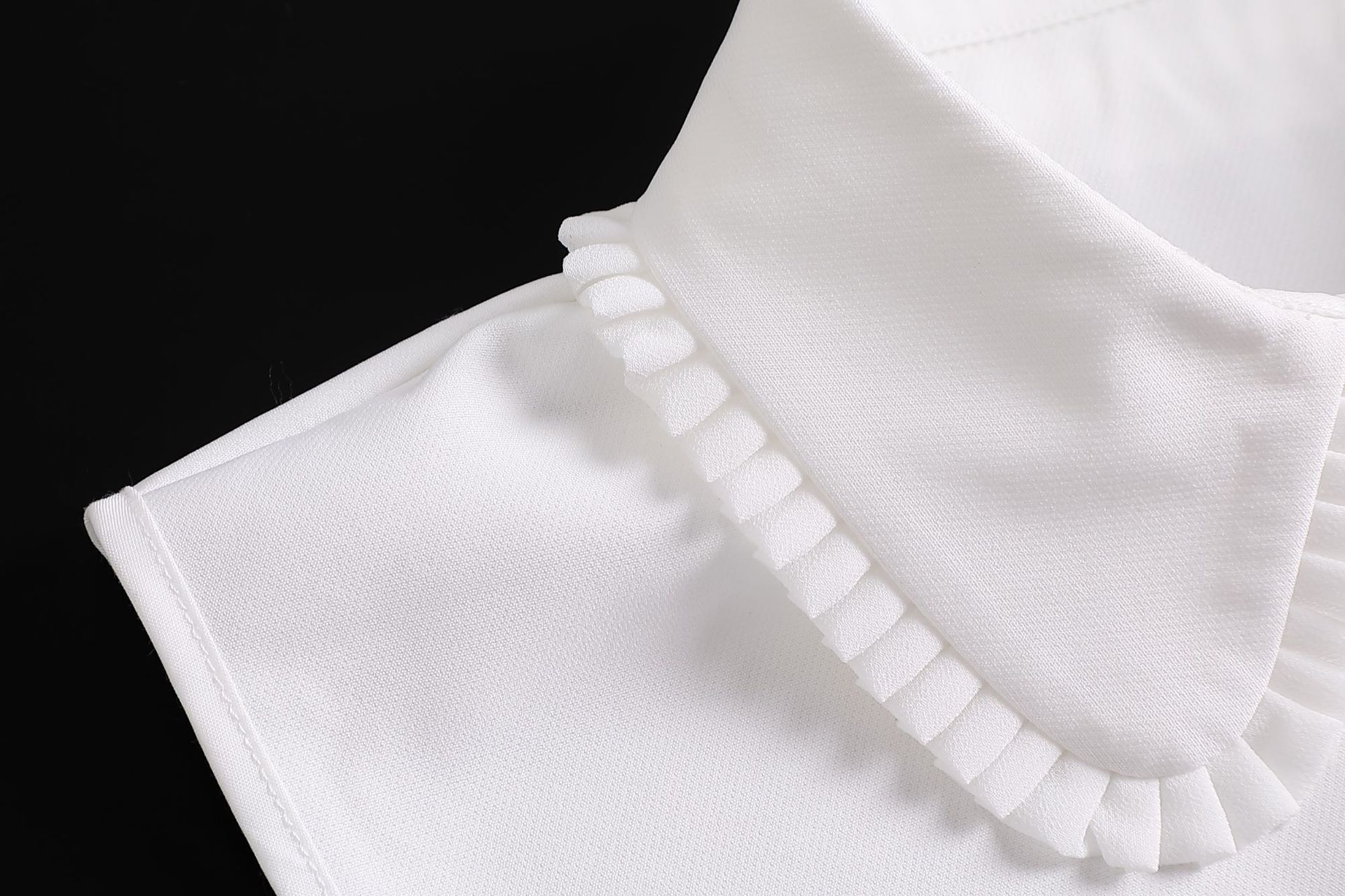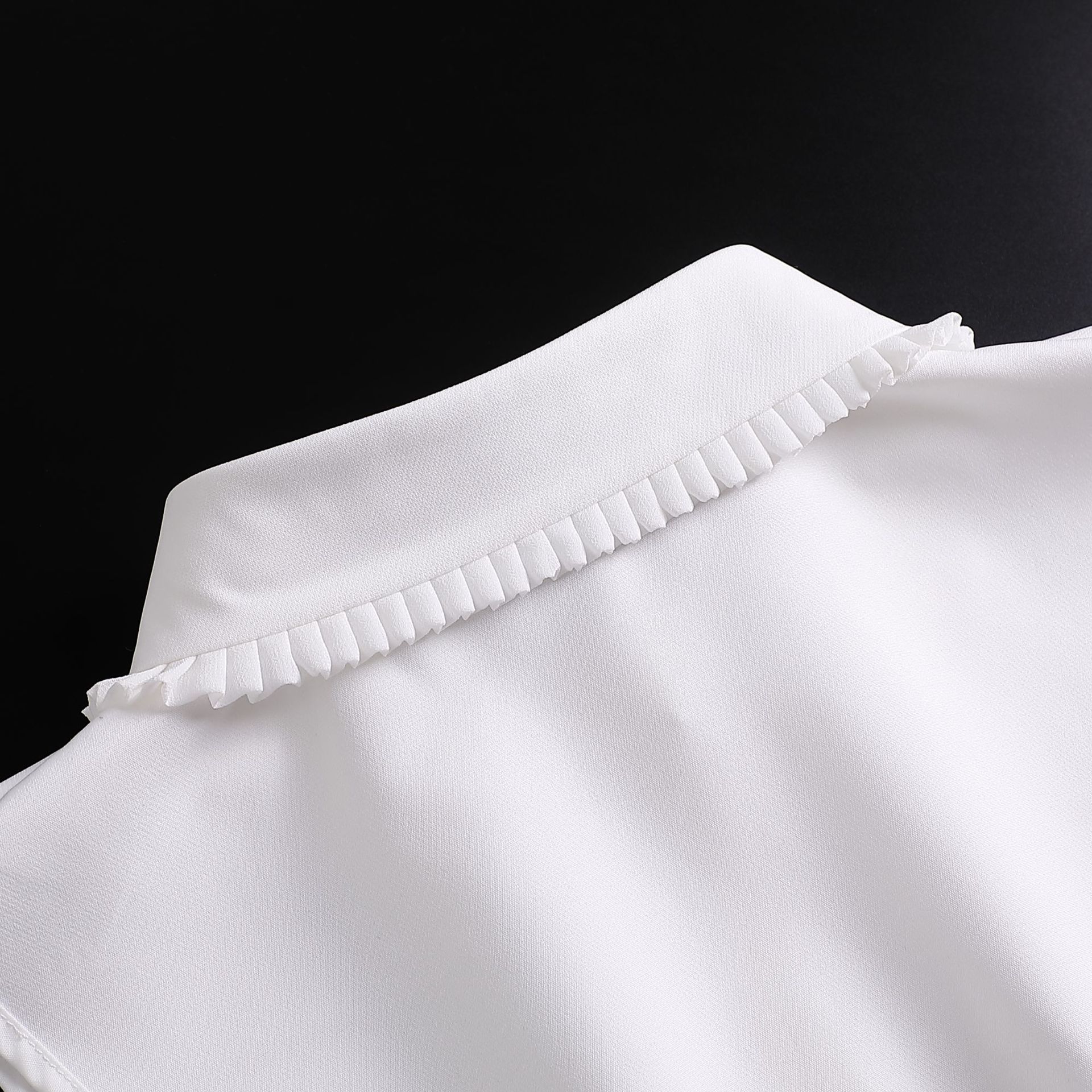 Белая шифоновая блузка для женщин с воротником-стойкой и рюшами, профессиональный топ, очень элегантный и стильный, оптовая продажа от производителя для трансграничной торговли.