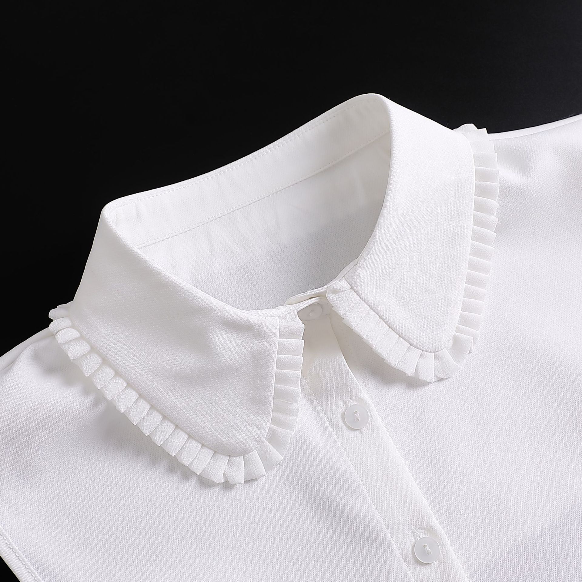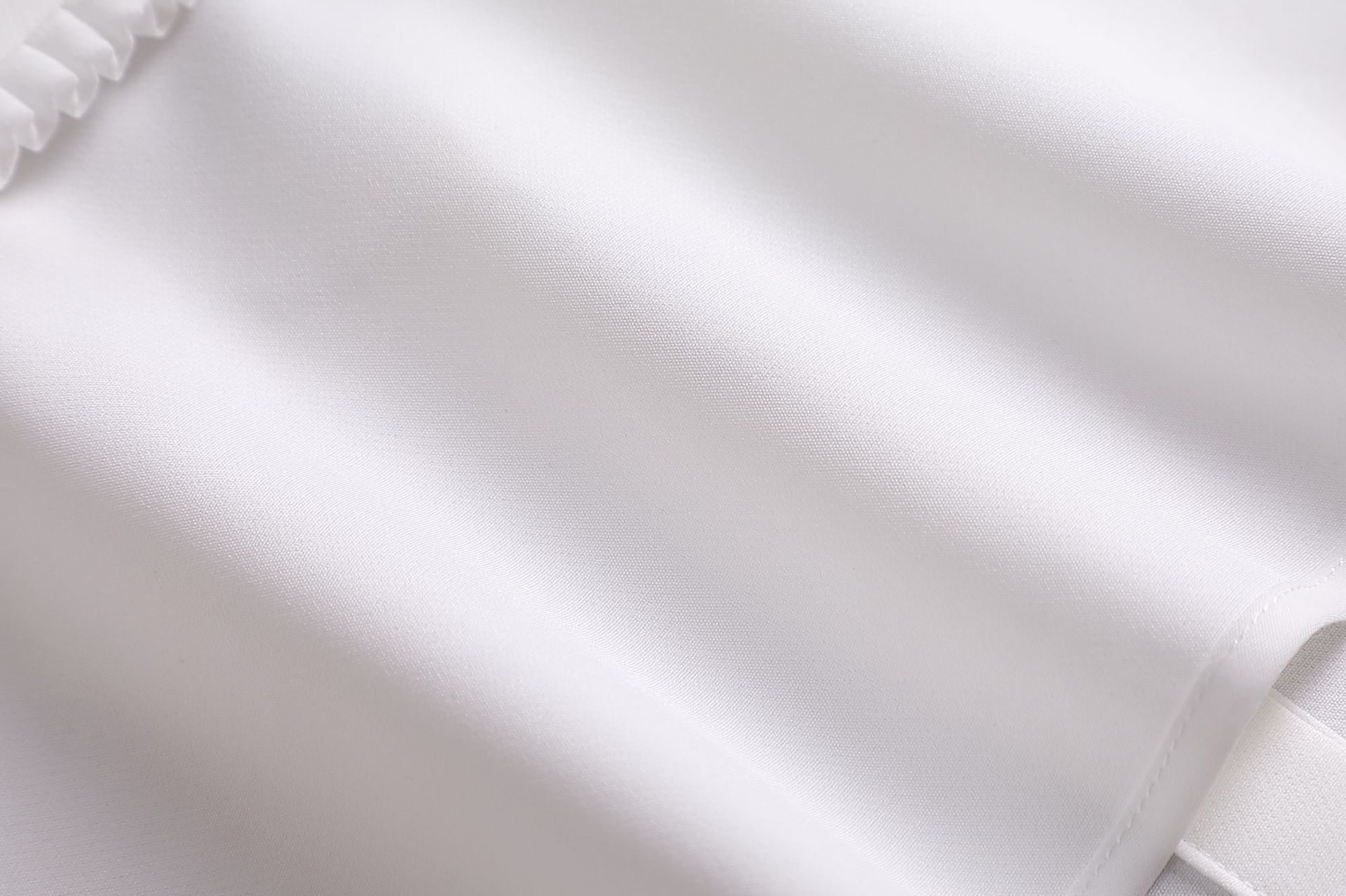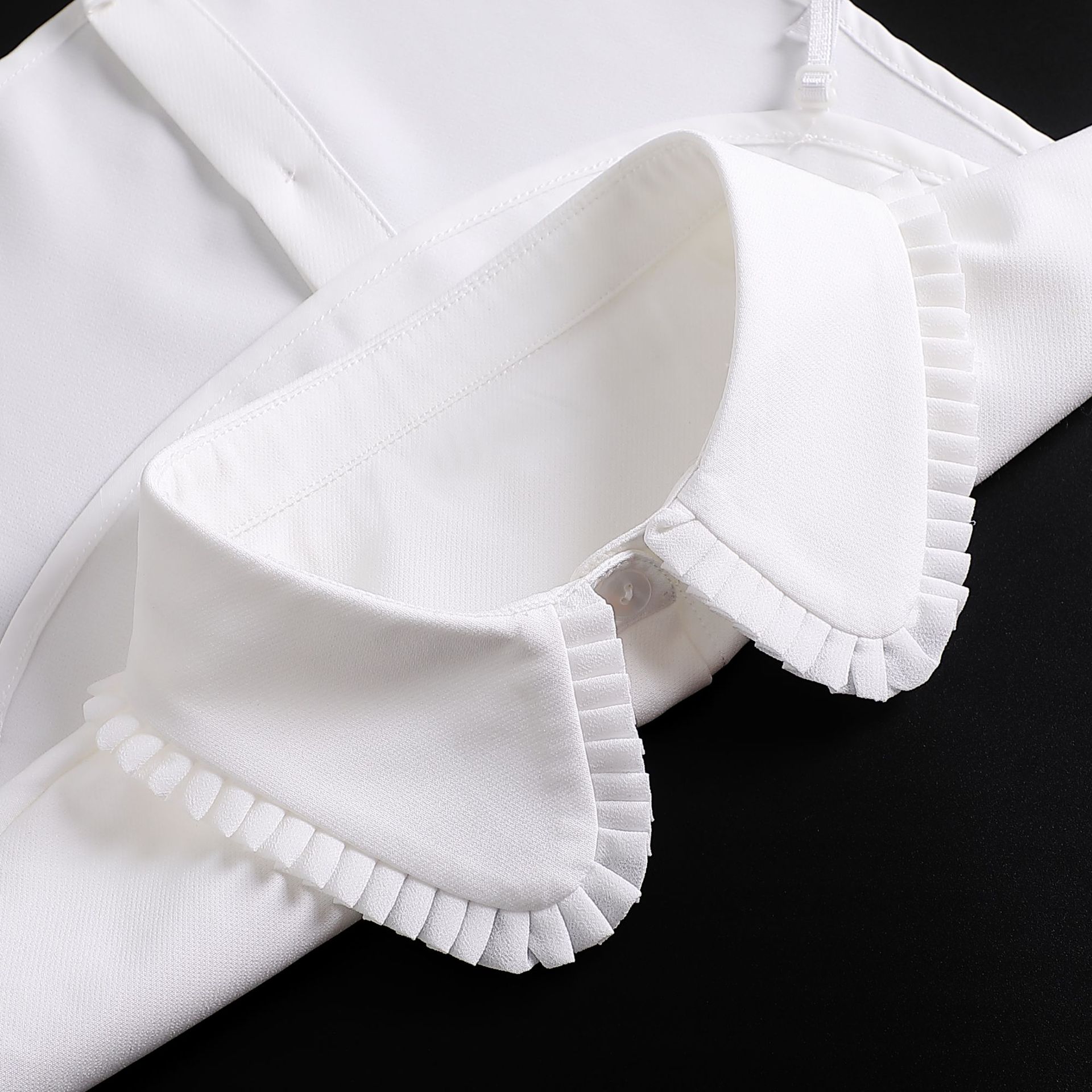Белая шифоновая блузка для женщин с воротником-стойкой и рюшами, профессиональный топ, очень элегантный и стильный, оптовая продажа от производителя для трансграничной торговли.