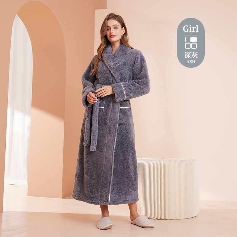 Осенне-зимняя утолщенная хлопковая бархатная ночная рубашка, Мужская зимняя очень большая легкая Роскошная парная халат больших размеров, Женская Удлиненная Пижама