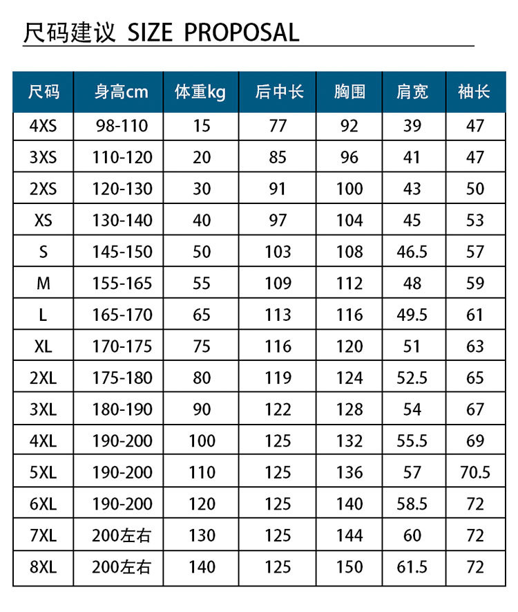 4XS; 3XS; ХХС; XS; С; М; Л; XL; XXL; XXXL; 4XL; 5XL; 6xl