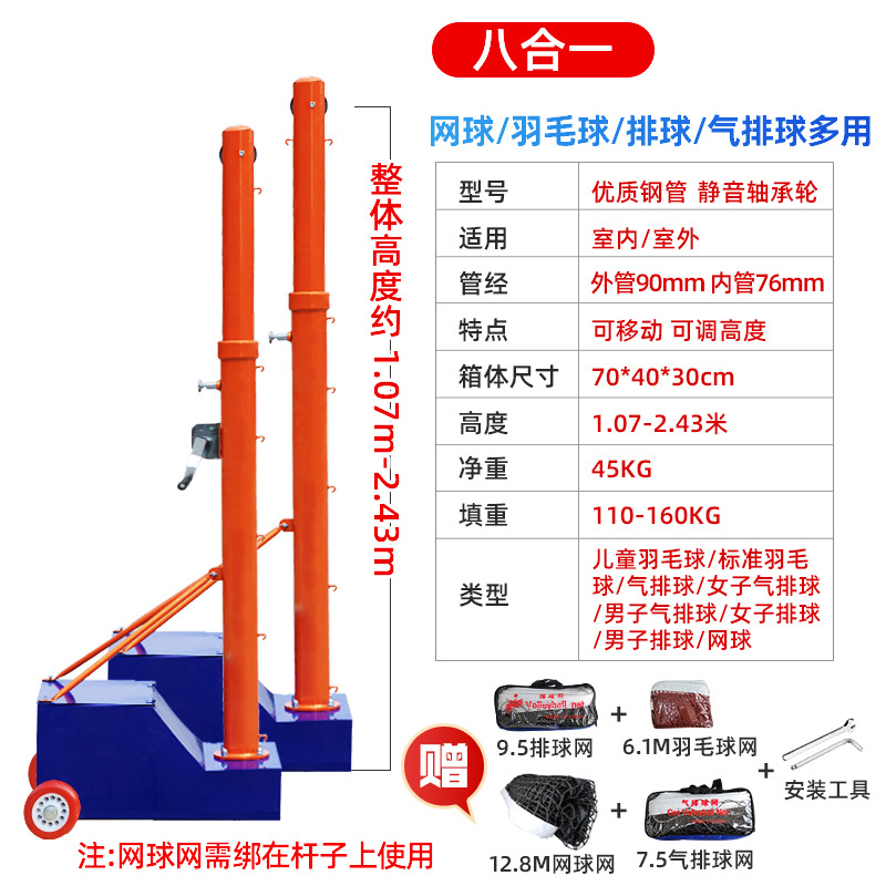 Мобильная теннисная колонна с двухколесным противовесом с ручным приводом, портативная волейбольная колонна на открытом воздухе, сетчатая стойка для бадминтона