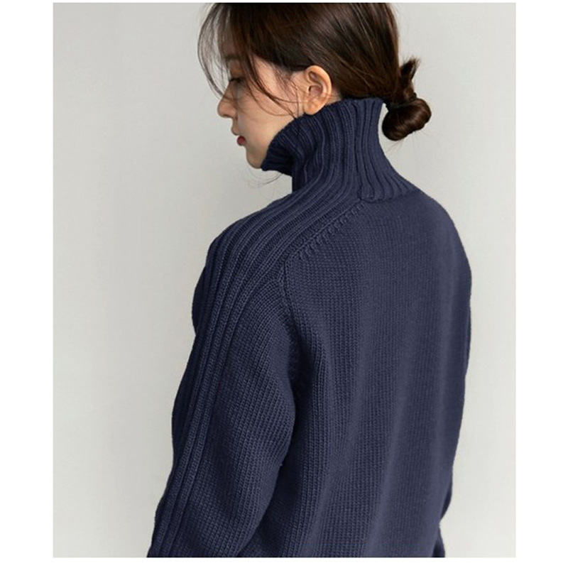 Японский и корейский трикотажный свитер с высоким воротником 2023 новый сплошной цвет удобный свободный длинный рукав темпераментный свитер оптом