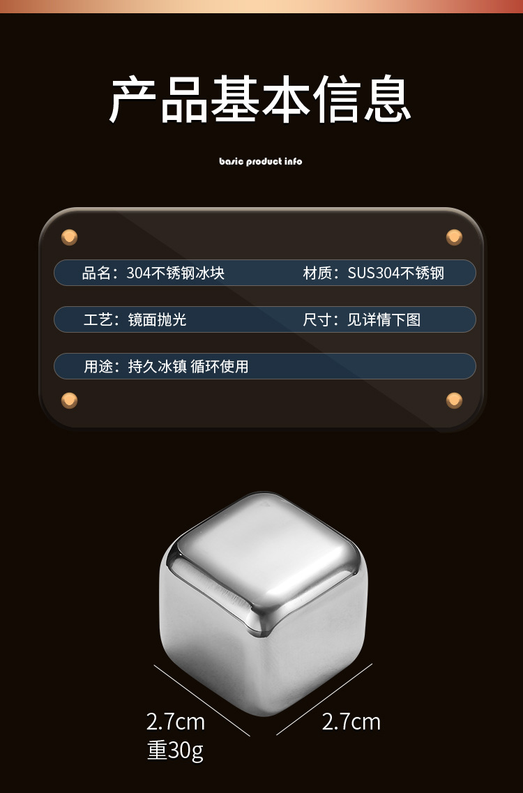 Кубики льда из нержавеющей стали 304, металлические, быстрозамораживающиеся, креативные, для бара, квадратные, для пива, для виски, ледяные камни