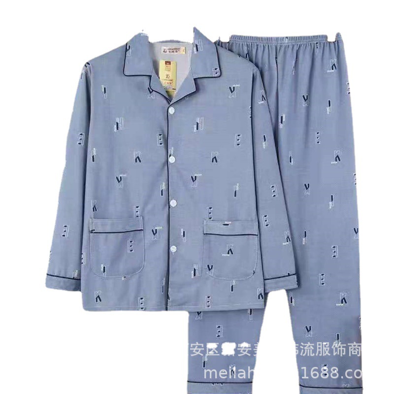 Весенне-осенняя мужская пижама с длинным рукавом и хлопковым кардиганом, двухсторонний вязаный хлопковый лацкан, осенняя домашняя одежда для папы, костюм больших размеров