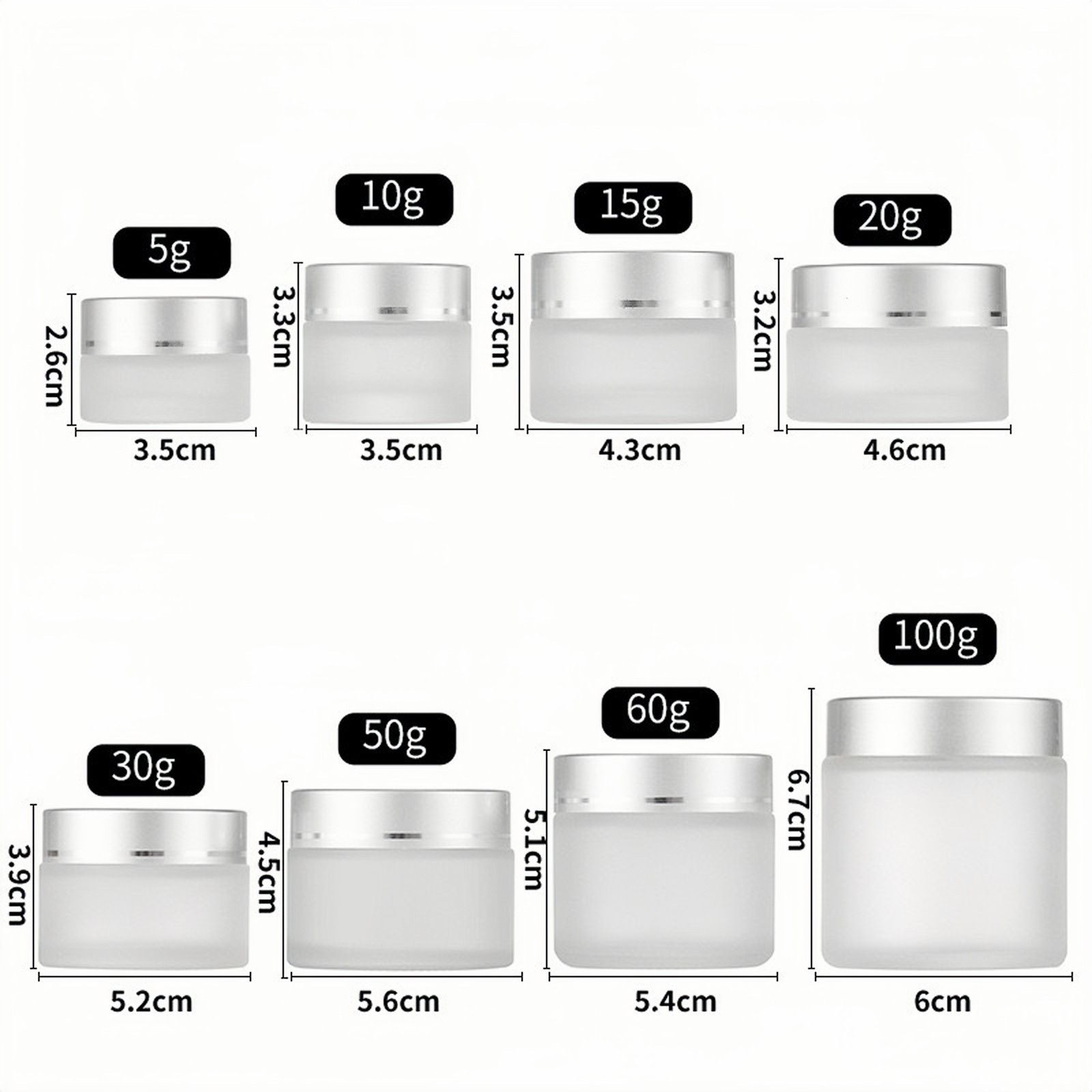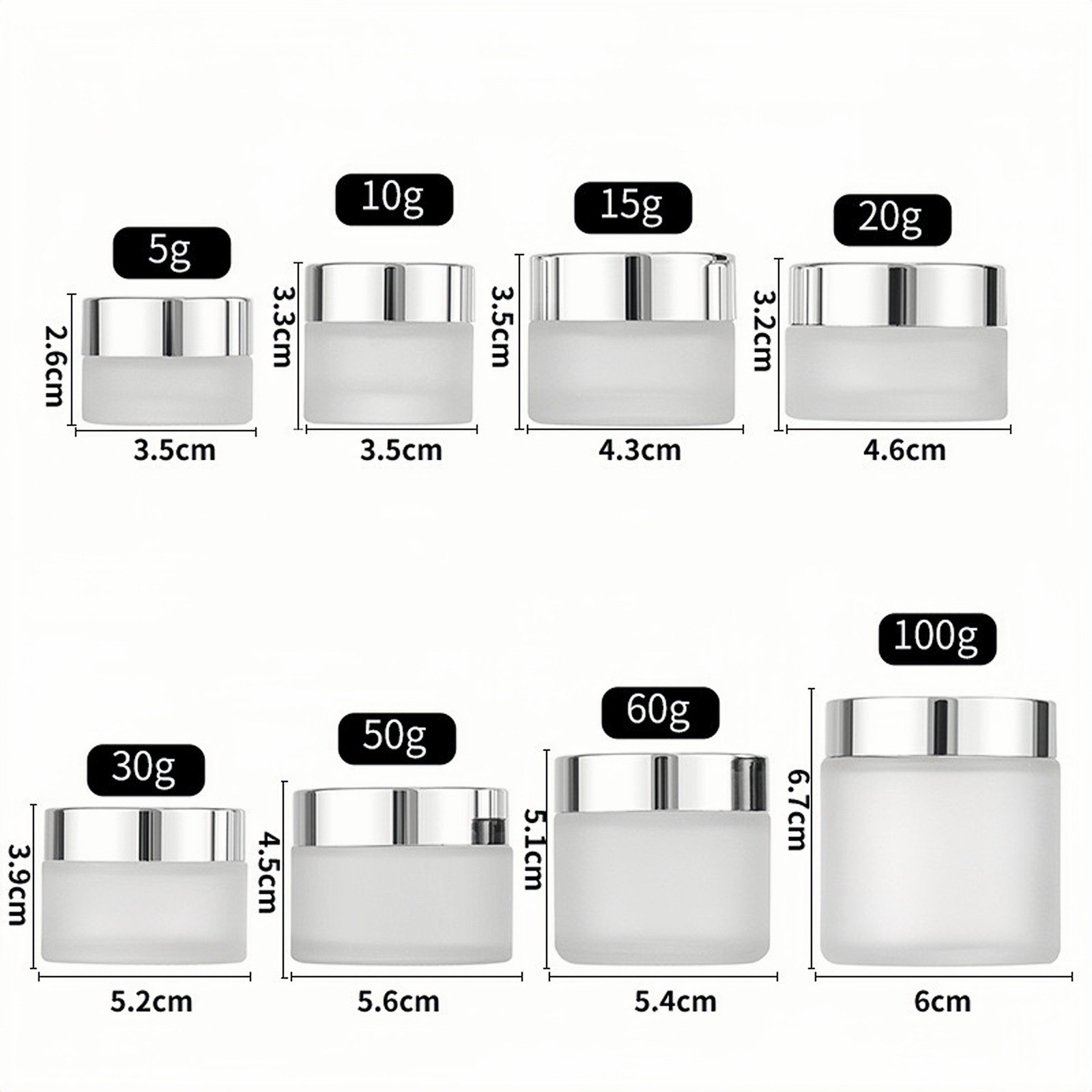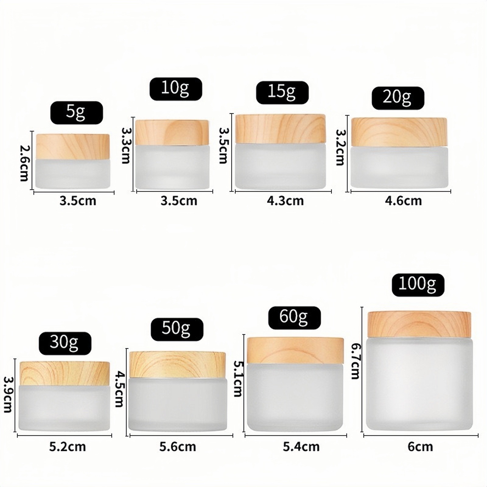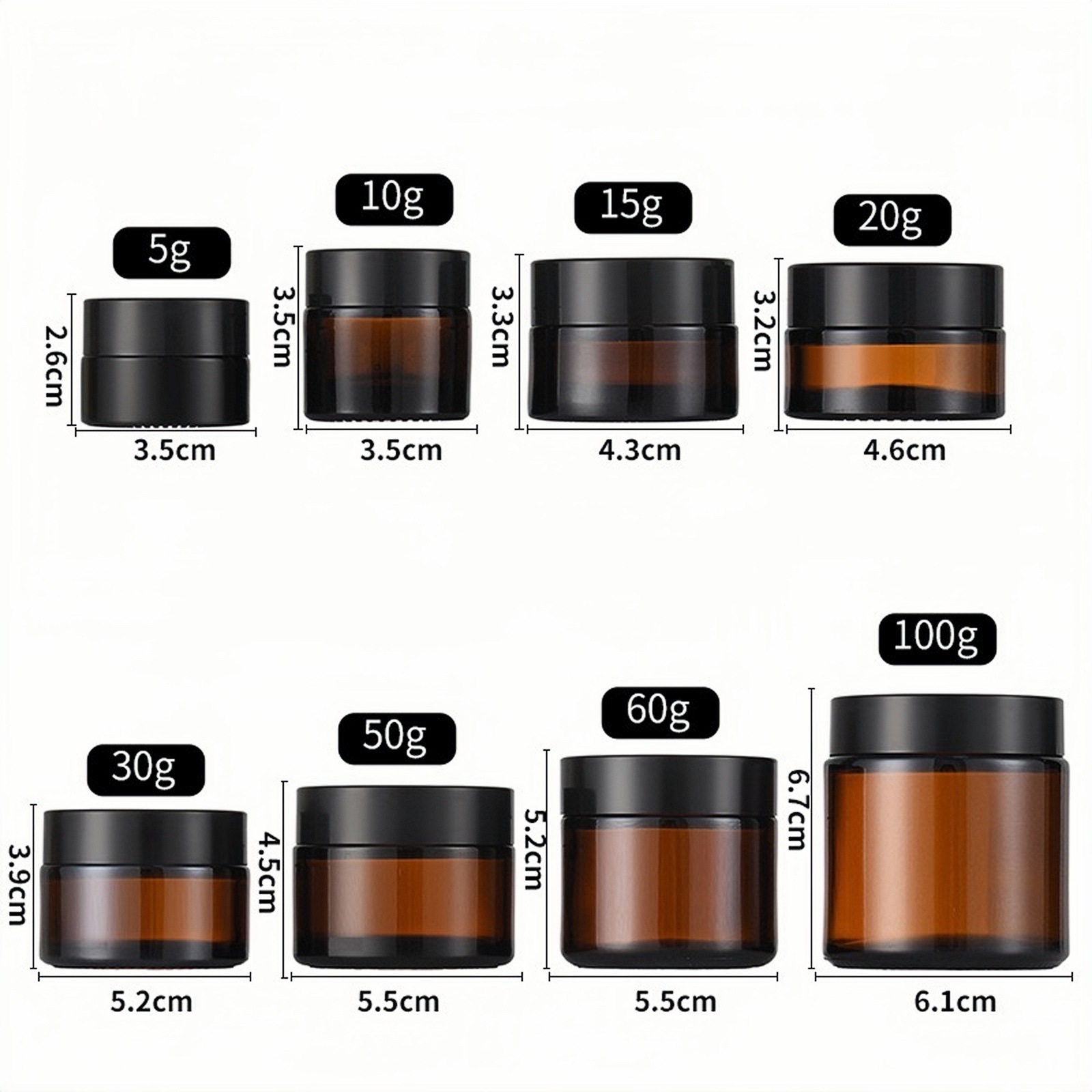 30 г бутылочка для скраба, 10 г прозрачная стеклянная баночка для крема, 100 г косметическая бутылочка, 50 г коричневая бутылочка для крема для глаз
