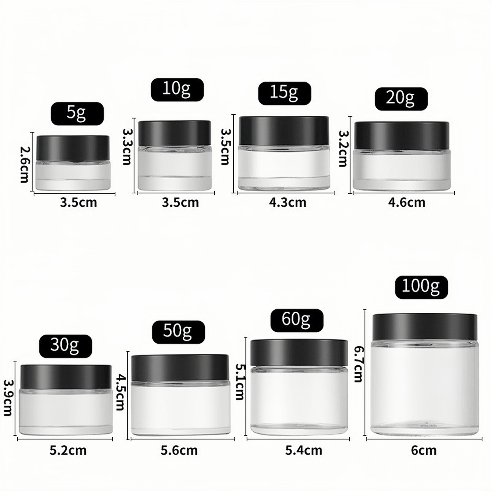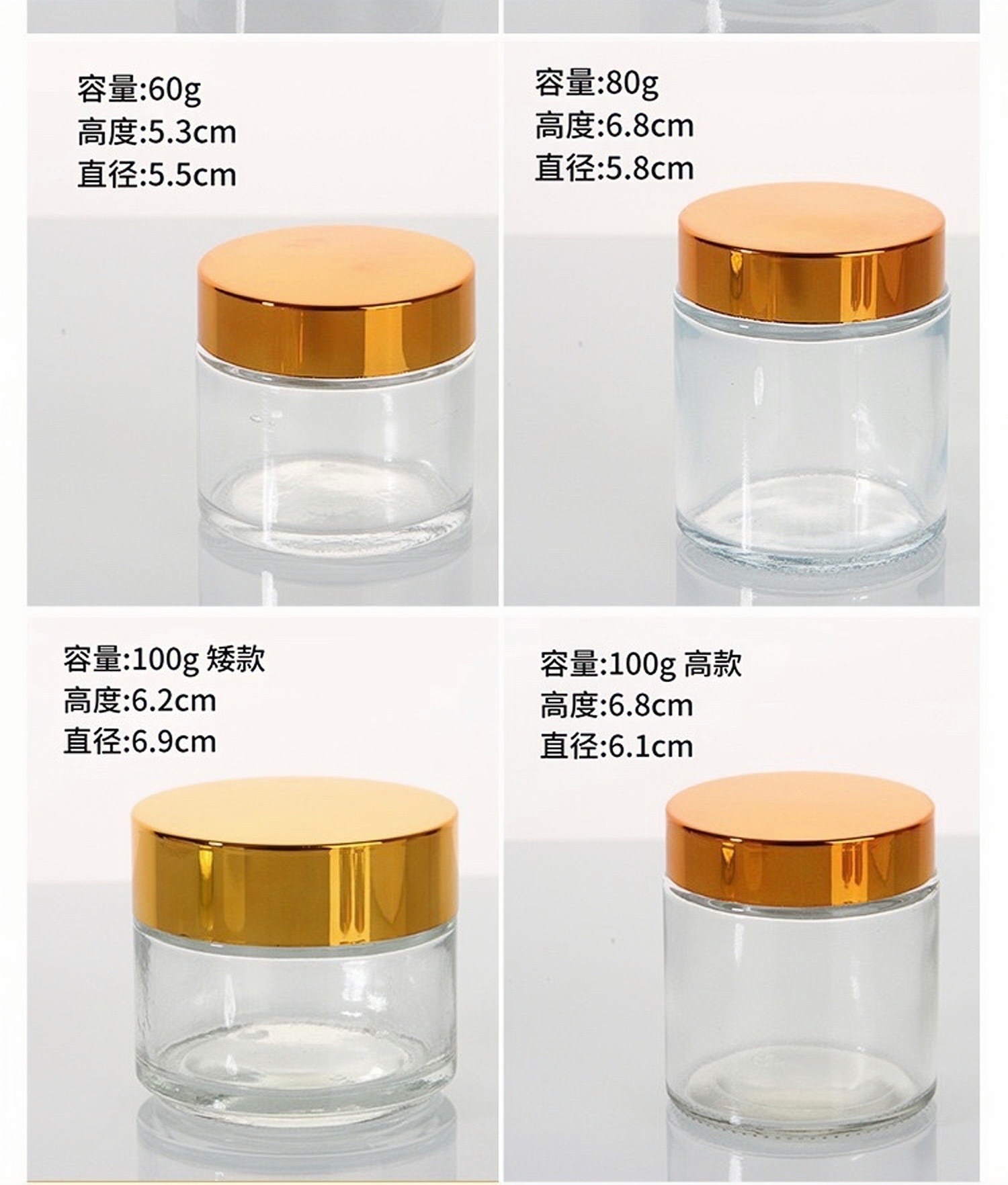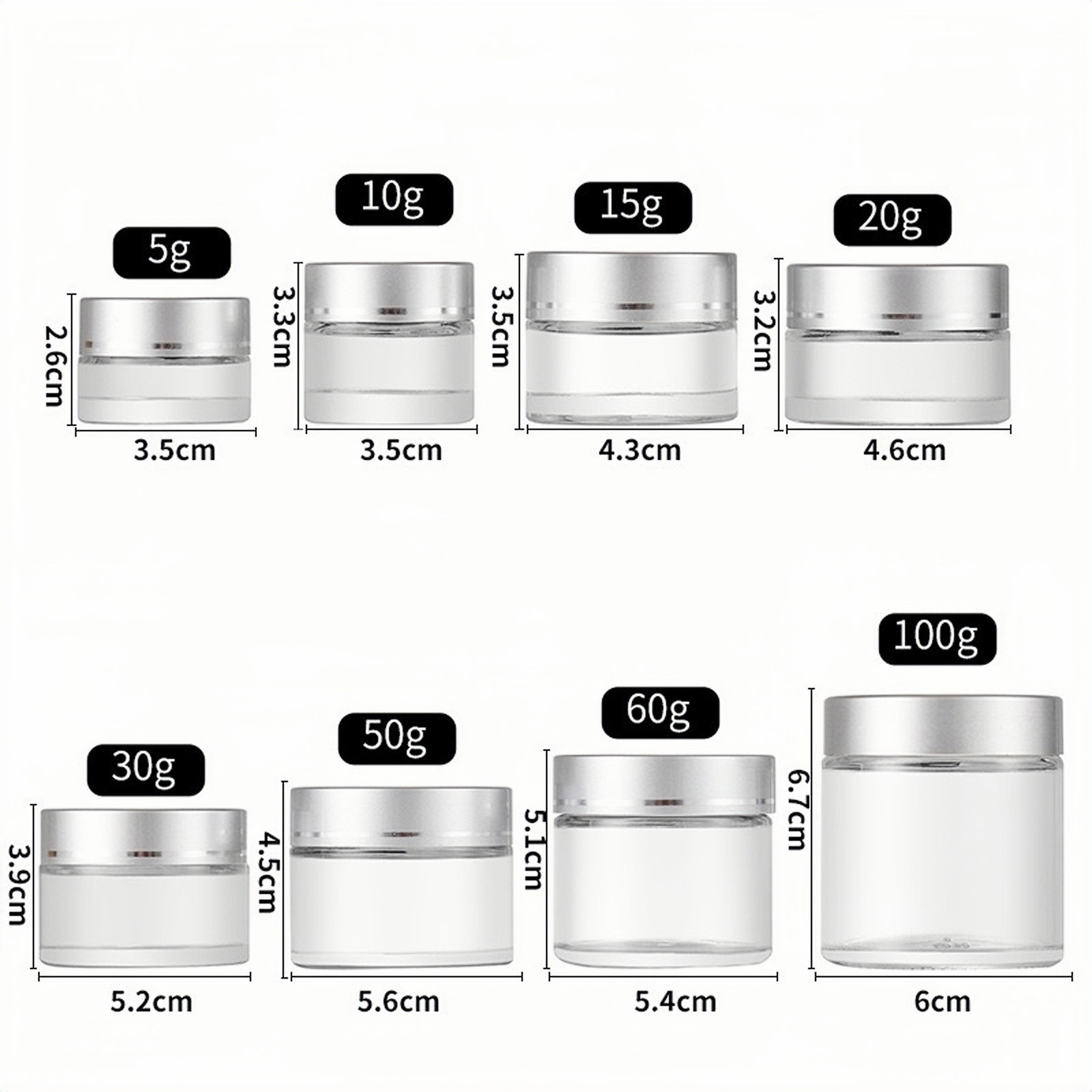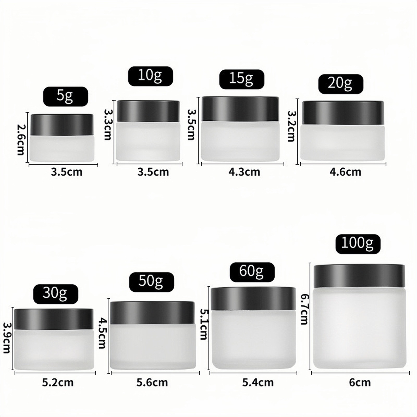 30 г бутылочка для скраба, 10 г прозрачная стеклянная баночка для крема, 100 г косметическая бутылочка, 50 г коричневая бутылочка для крема для глаз
