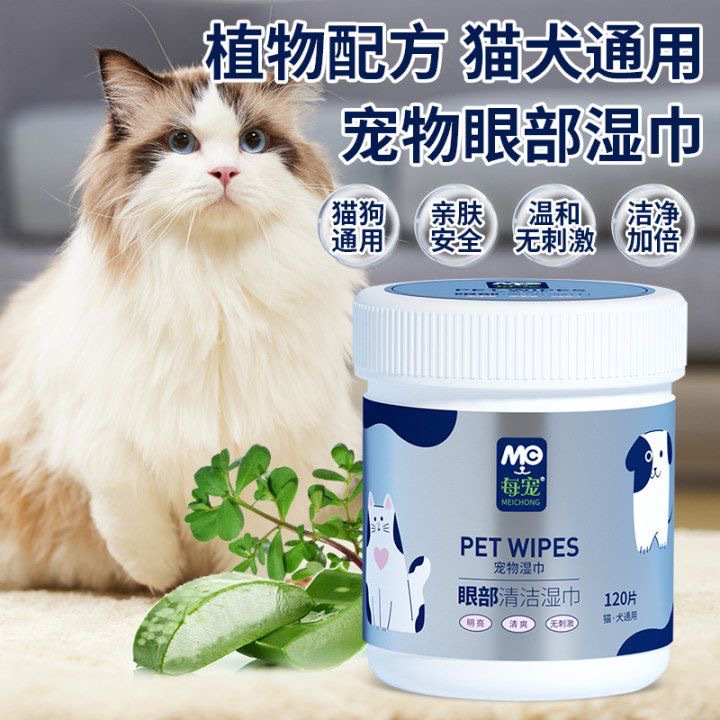 Салфетки для животных, 120 листов, для удаления пятен от слезных выделений у кошек и чистки ушей, 130 влажных салфеток, нейтральные, для каждого питомца.