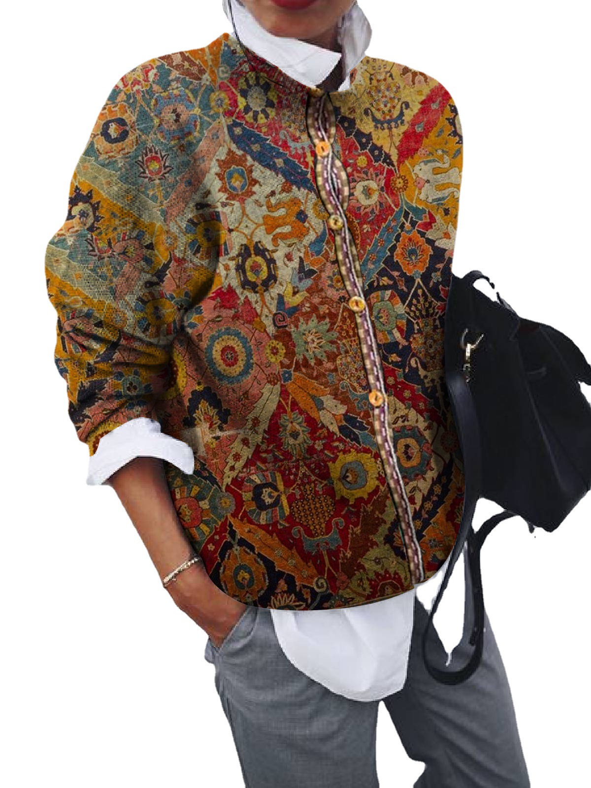 9265 # европейские и американские трансграничные Amazon wish внешняя торговля женская мода шлифовальный геометрический принт кардиган с длинными рукавами топ