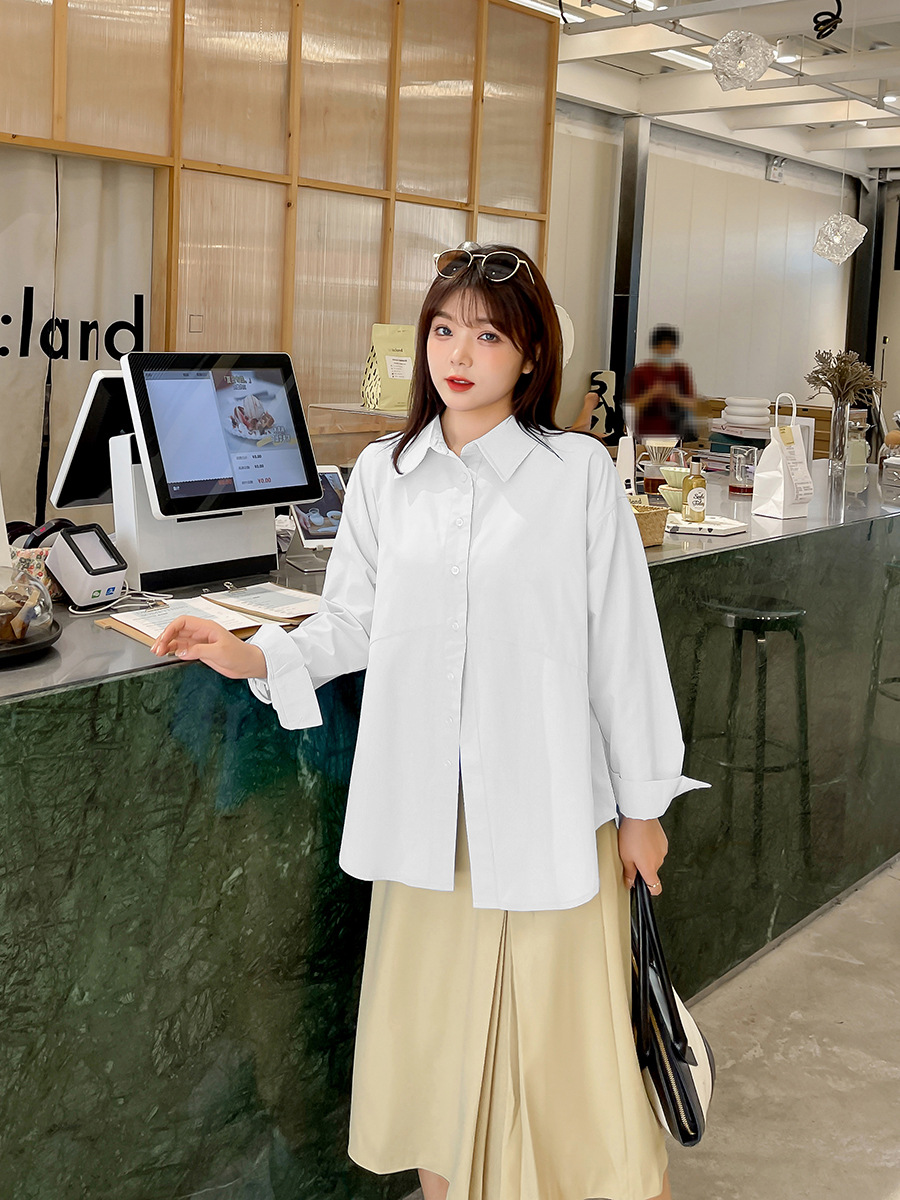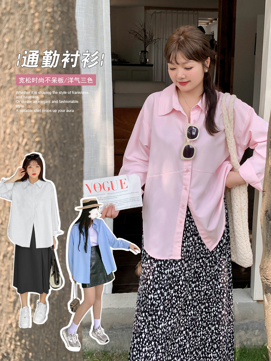 W622 Xuanchen весенний и летний большой размер женская пригородная рубашка на рабочем месте толстая MM дуга темперамент повседневная свободная рубашка