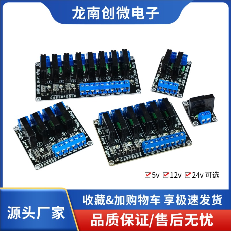 Модуль твердотельного реле на 1/2/4/8 каналов, 5В/12В/24В, 2А, для промышленной автоматизации, управление постампульсным сигналом постоянного тока (высокий и низкий уровень)