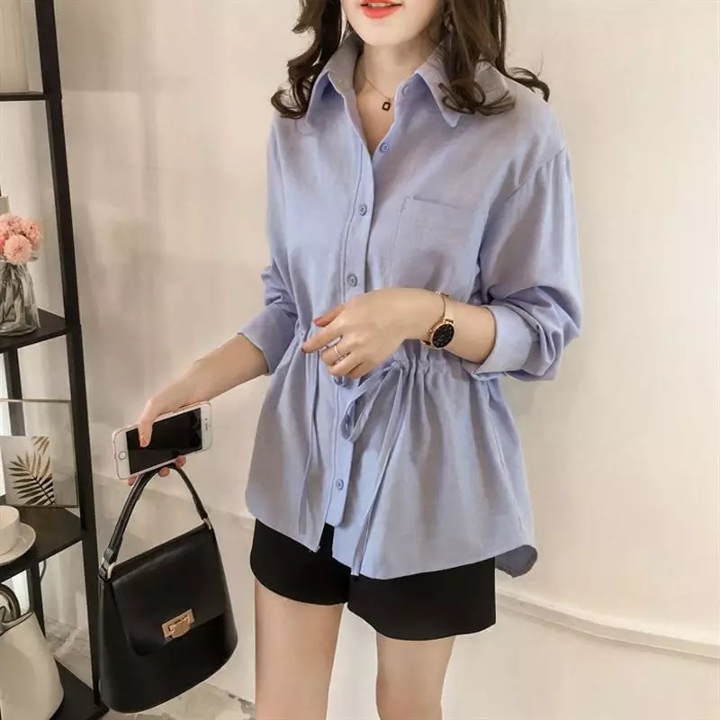 Осенняя женская футболка больших размеров с длинными рукавами, обтягивающая Талия, темпераментная рубашка, Женский Топ средней длины SI #787