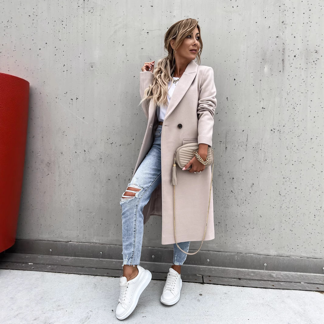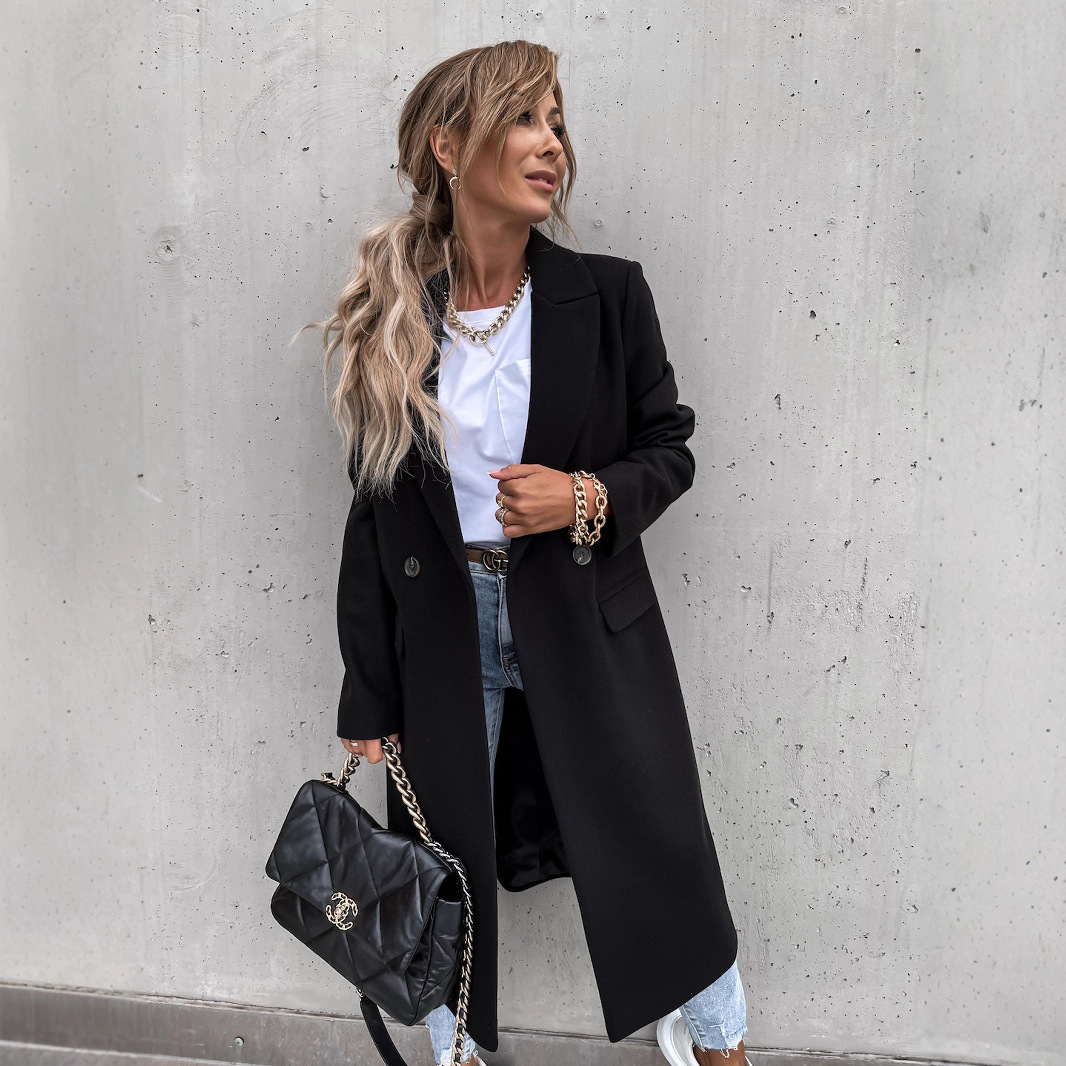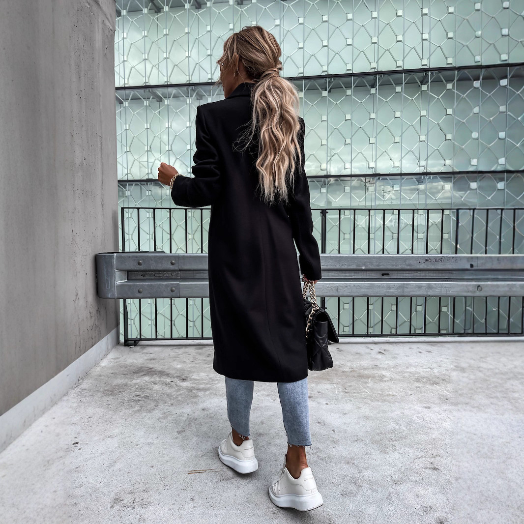 2021独立站wish亚马逊爆款 秋冬长款西装领呢子外套大衣女88612