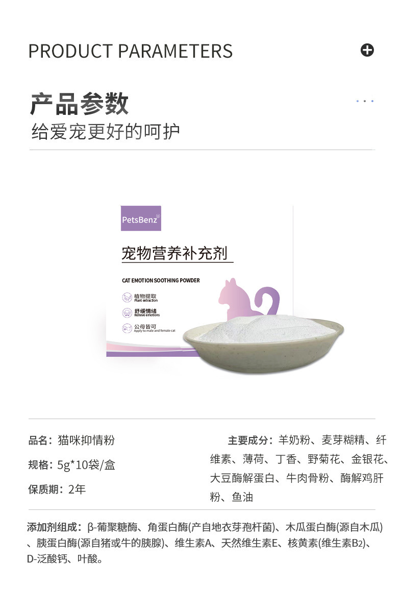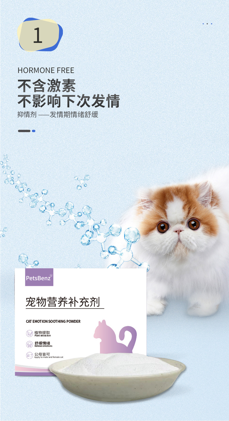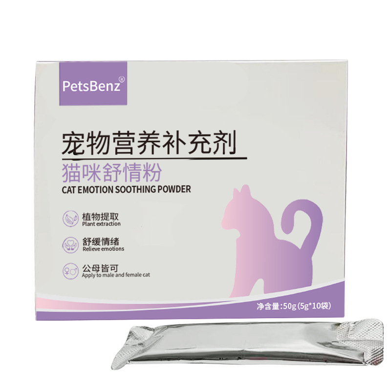 PetsBenz Успокаивающая пудра для кошек, 5 г * 10 пакетиков, против мяуканья во время оestrus, успокаивает настроение, успокаивающая жидкость для самок и самцов кошек