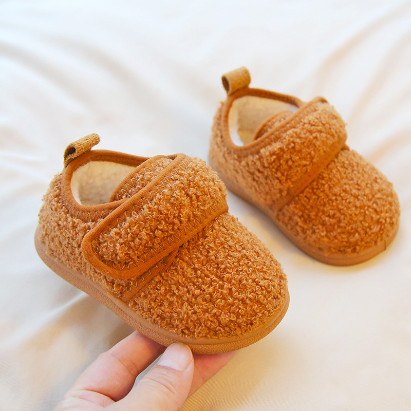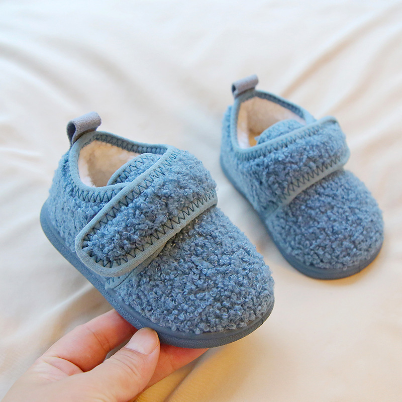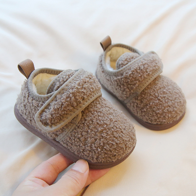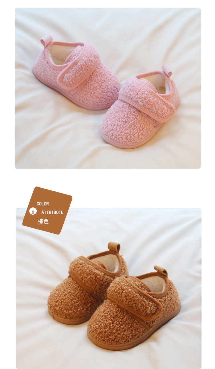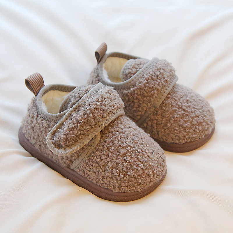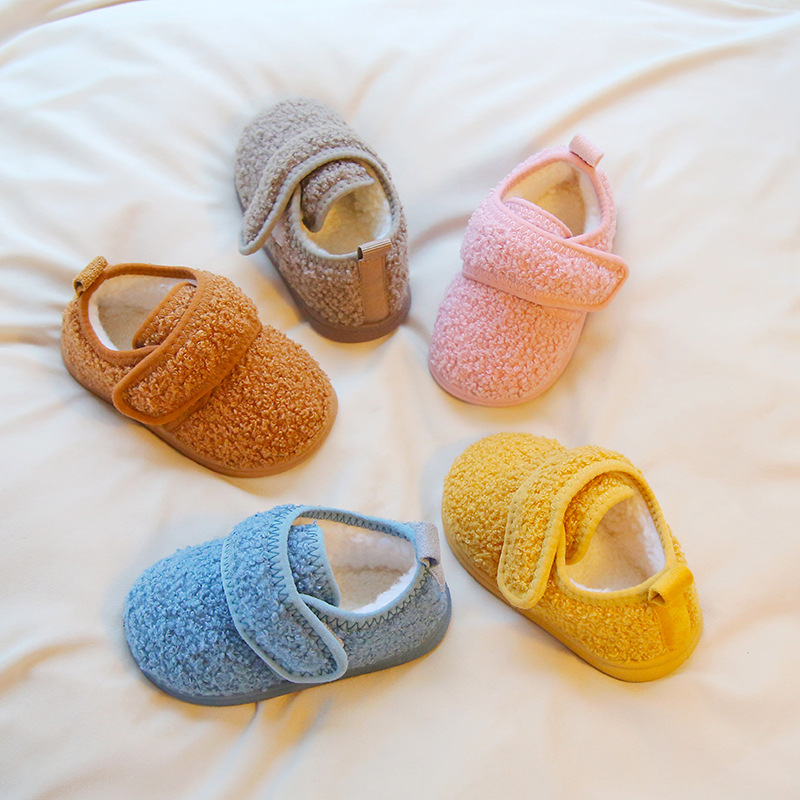Детские хлопковые тапочки для мальчиков зимние детские домашние нескользящие меховые домашние теплые хлопковые туфли для девочек с корнями для детей