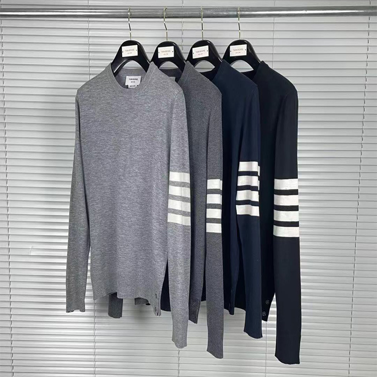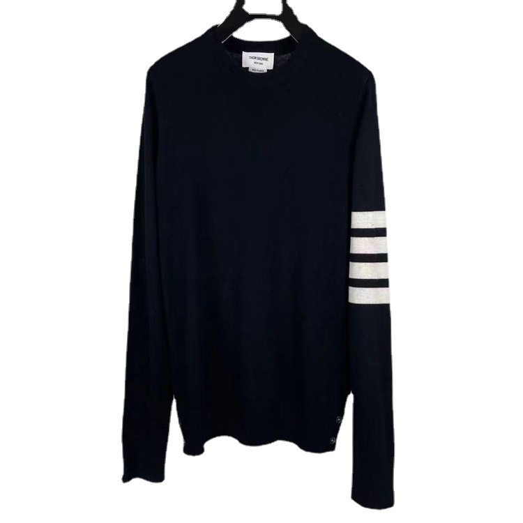 Новинка для осени и зимы TB, водолазка с круглым вырезом и четырьмя полосами, свободная верхняя одежда с длинным рукавом, повседневный Универсальный шерстяной свитер, Топ