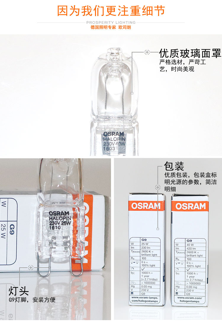 Галогенная лампа Osram 220V-240V G9, 25W/40W, для настольной лампы Berlin, оптом