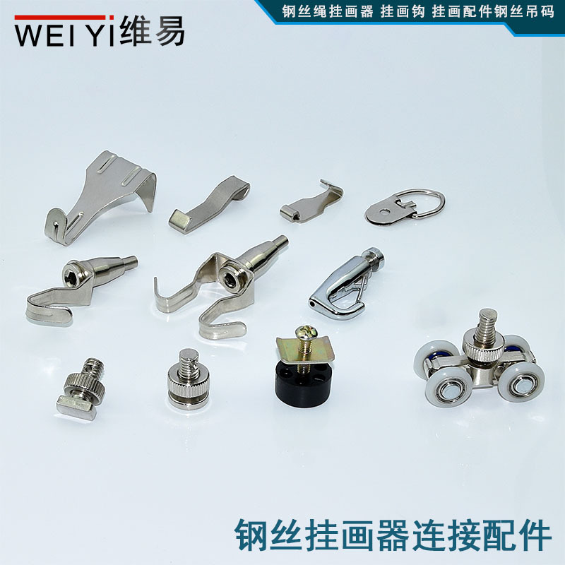 Большой S крючок; Маленький S крючок; Маленький крючок; Регулировочный крюк; Регулировка двойного крючка; Большое скрытое кольцо; Среднее темное кольцо; Круглая гайка (фиксированная); Гайка с Т-образной головкой (фиксируемая); Шкив (можно зафиксировать); Герметик (локатор трека); Матросский крюк
