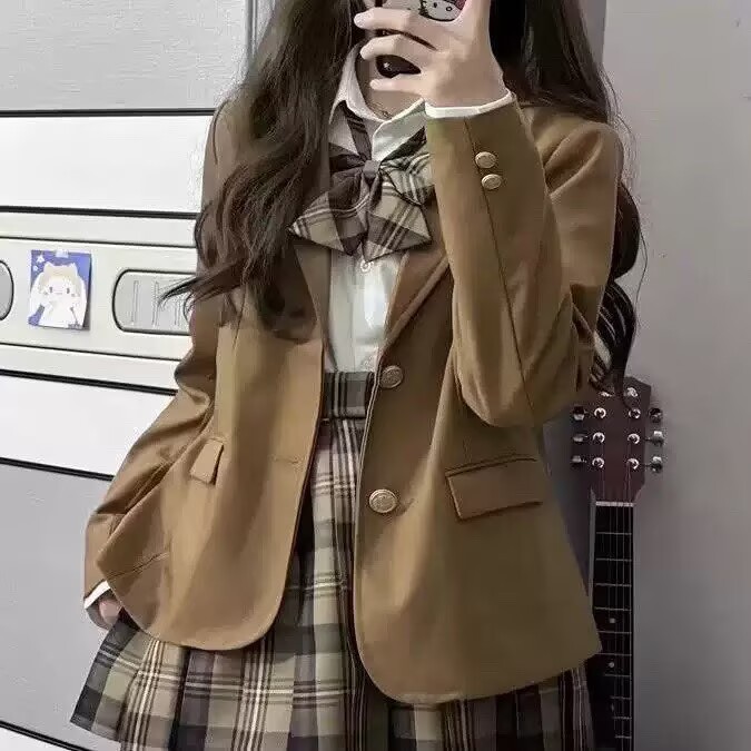 JK Униформа юбка Женский Оригинальный костюм куртка Женский бассейн и слишком черный костюм значок японский Отдел колледж Стиль студенческий костюм