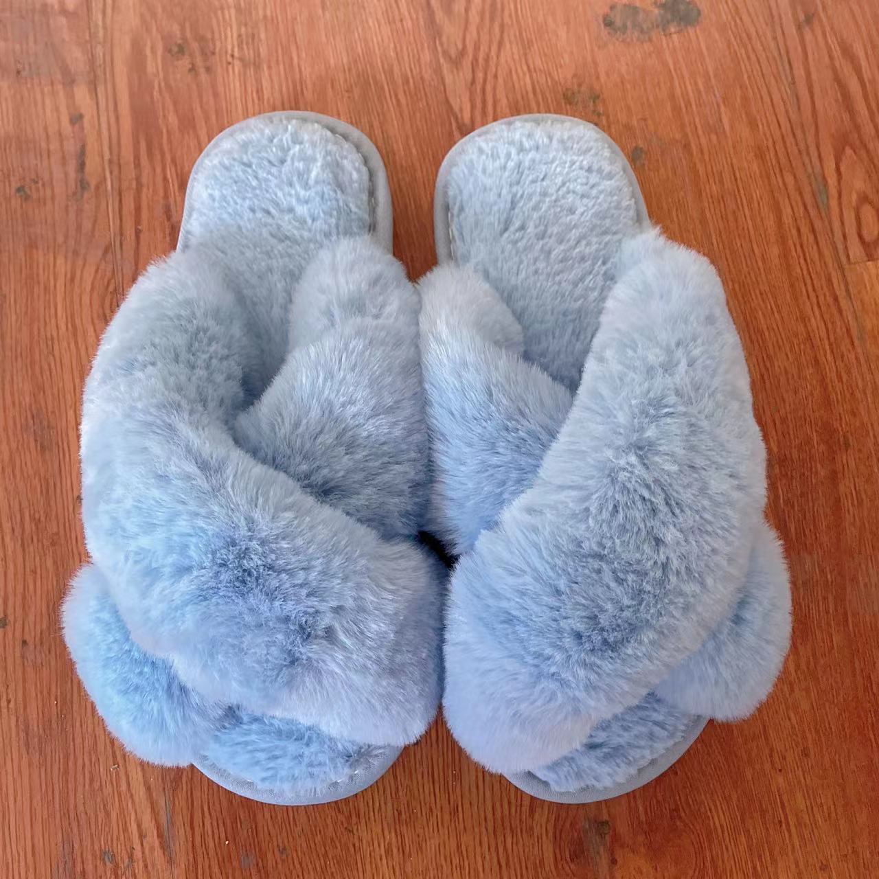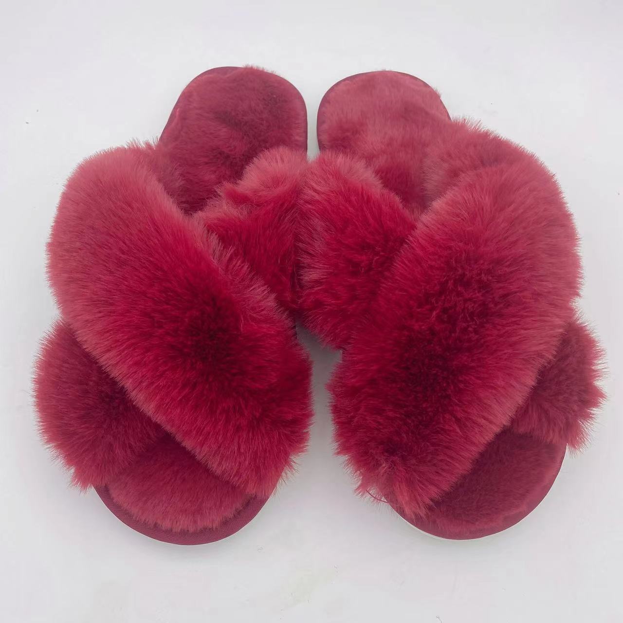 Трансграничные тапочки Amazon, зимние плюшевые перекрестные ремни, хлопковые домашние теплые тапочки Мао, женские с высокой и низкой большой кроличьей шерстью