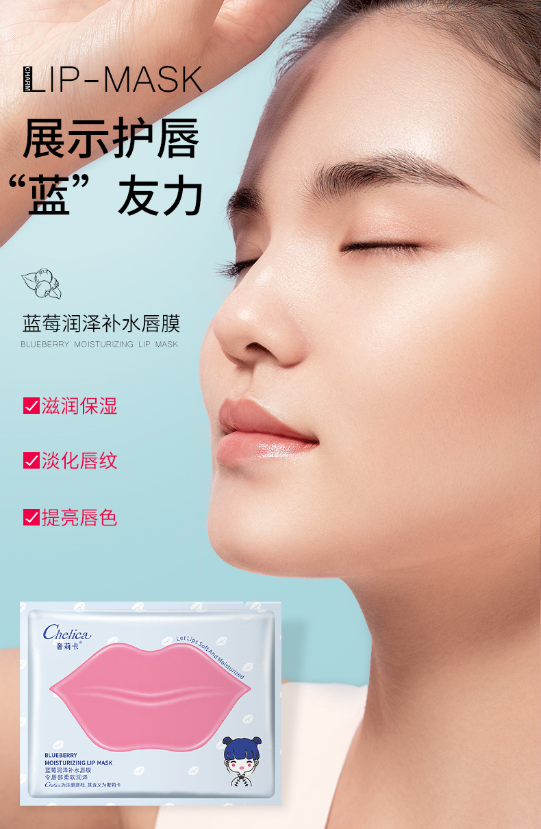 Увлажняющая и питательная маска для губ Shelica Blueberry Fruit, тип патч, маска для губ с экстрактом вишни, оптовая продажа от производителя