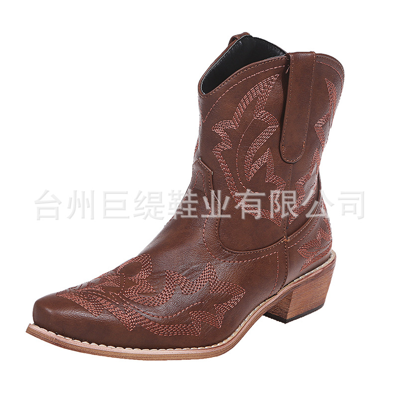 В наличии 2021 осенне-зимние новые женские кожаные сапоги на толстом каблуке с остроконечной вышивкой Amazon зимние хлопковые сапоги