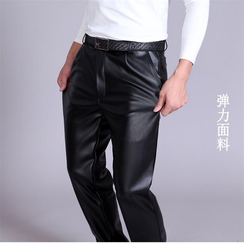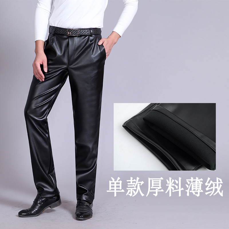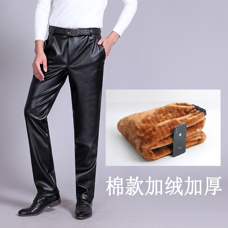 Мужские кожаные брюки, свободные ветровое стекло для мужчин среднего и пожилого возраста, теплые утолщенные водонепроницаемые байкерские износостойкие рабочие брюки на флисовой подкладке