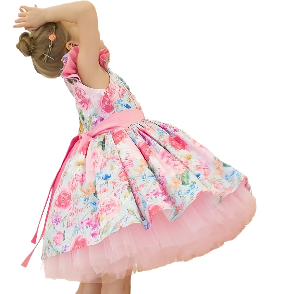 Трансграничное платье для девочек с головным убором, бантом, праздничное платье для девочек, рождественское платье для девочки