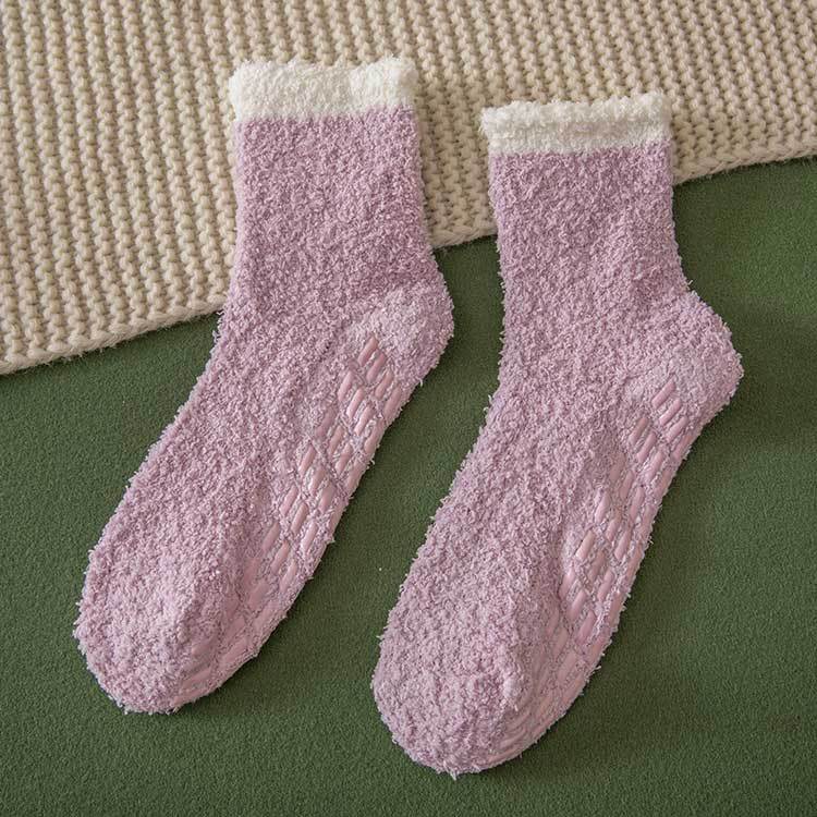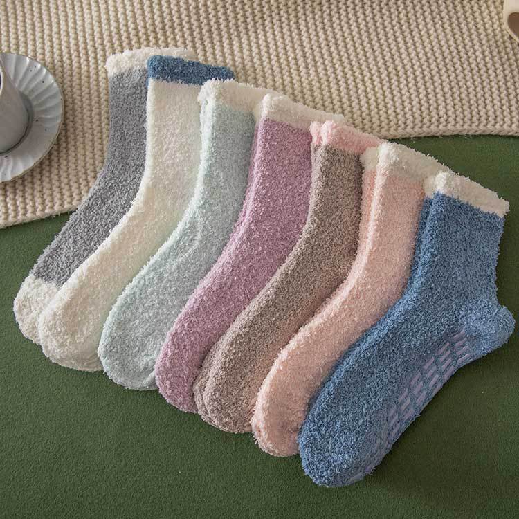 Осенне-зимние женские коралловые бархатные носки, однотонные наполовину бархатные носки для пола, не роняя бархатное утолщение