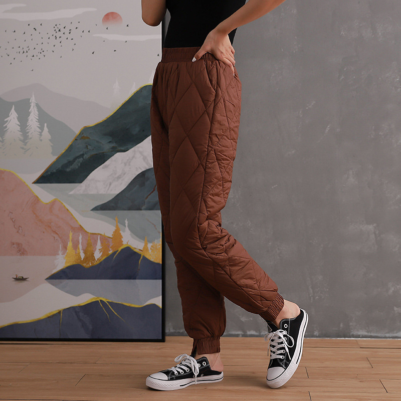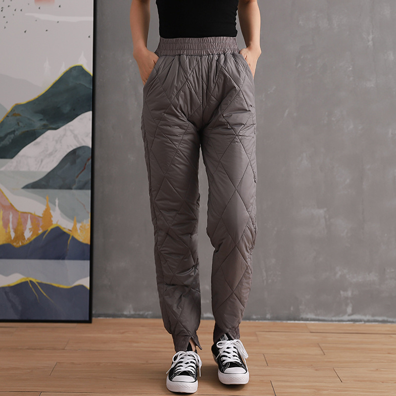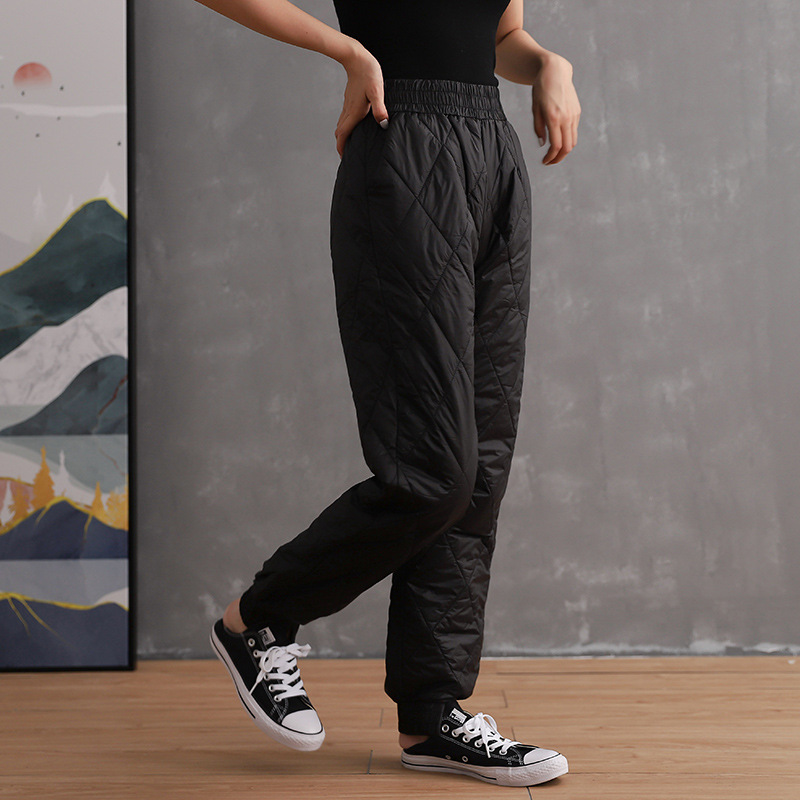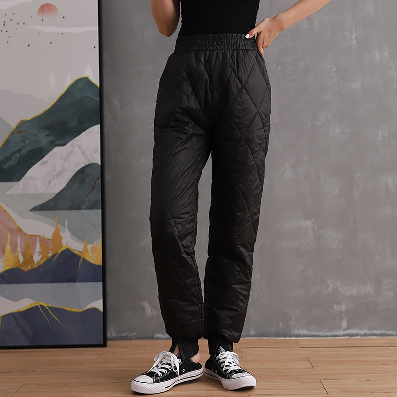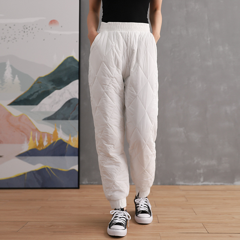 Пуховики из хлопка, женская верхняя одежда, зима 2022, новые утолщенные теплые брюки, стройнящие брюки с завязкой на щиколотке, Свободные повседневные брюки с высокой талией
