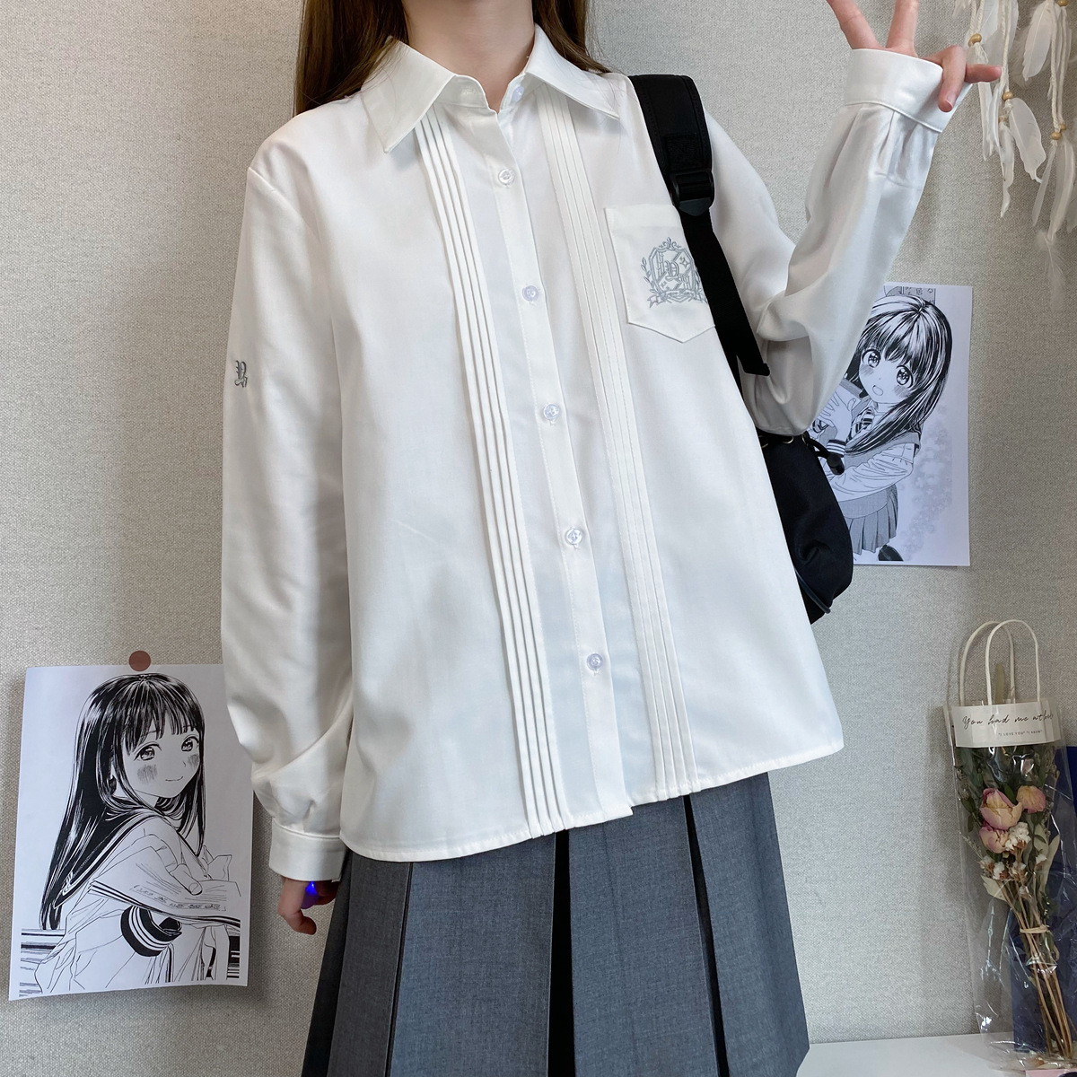 Женская белая рубашка Lin Ye, оригинальная Униформа JK, женская рубашка с длинным рукавом, серебристо-серая рубашка с вышивкой, новинка 2021