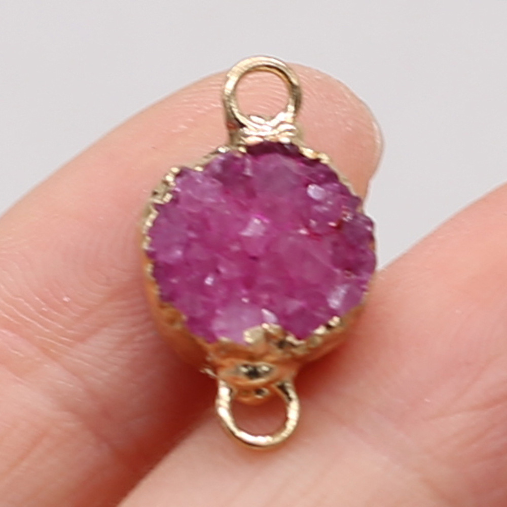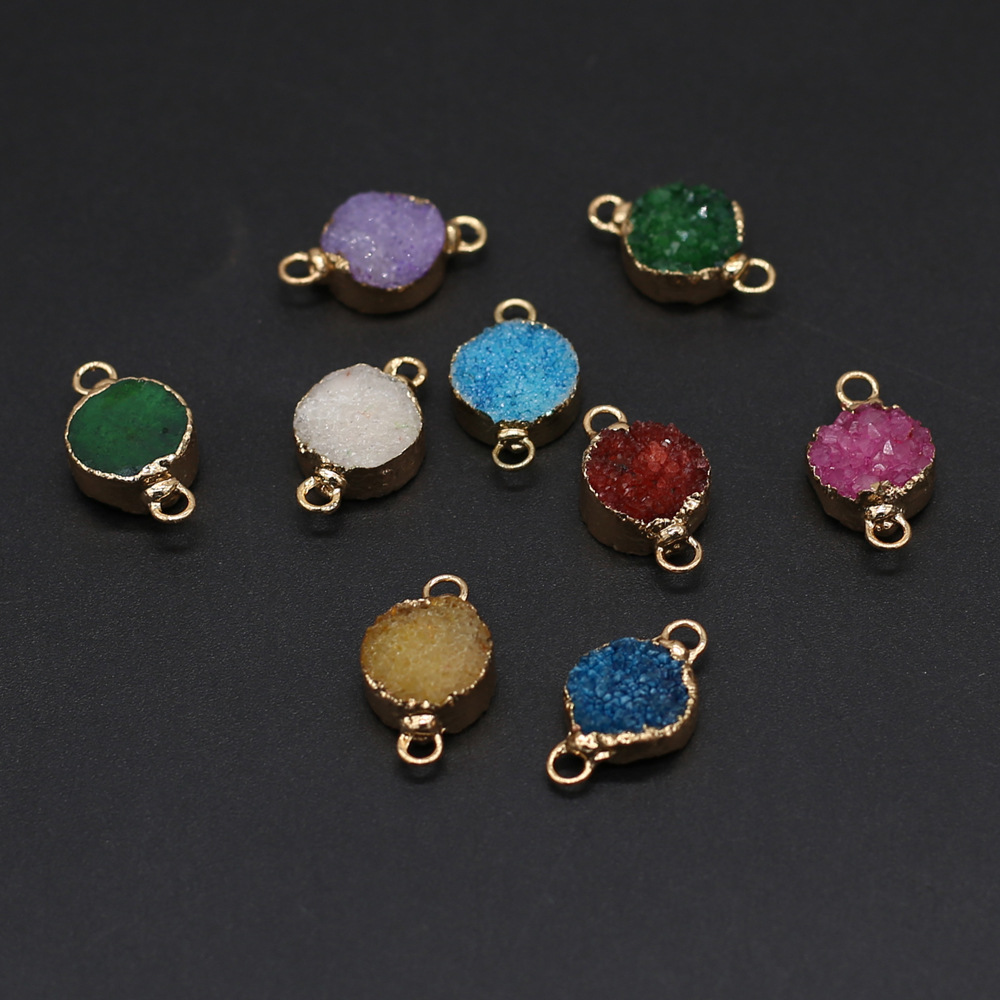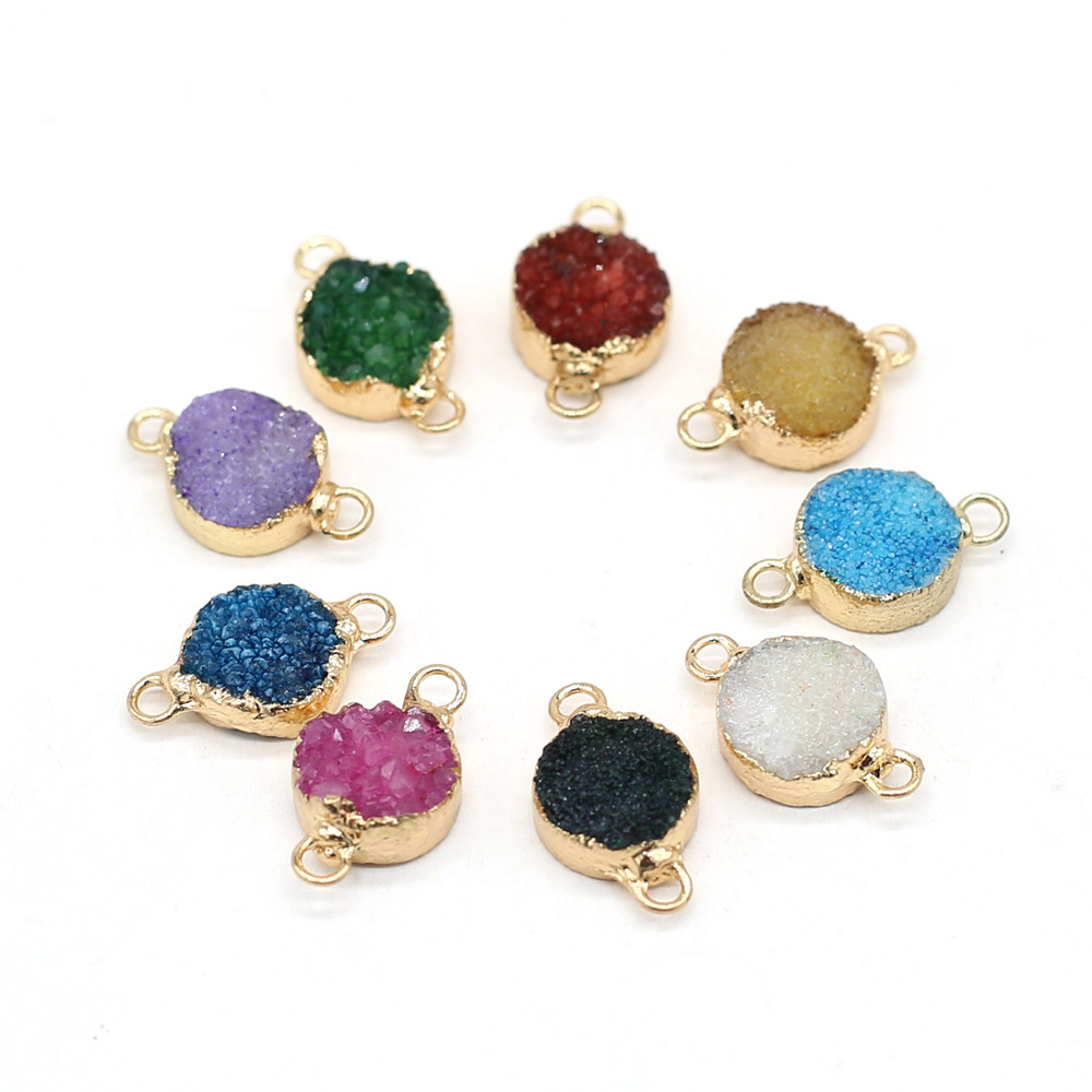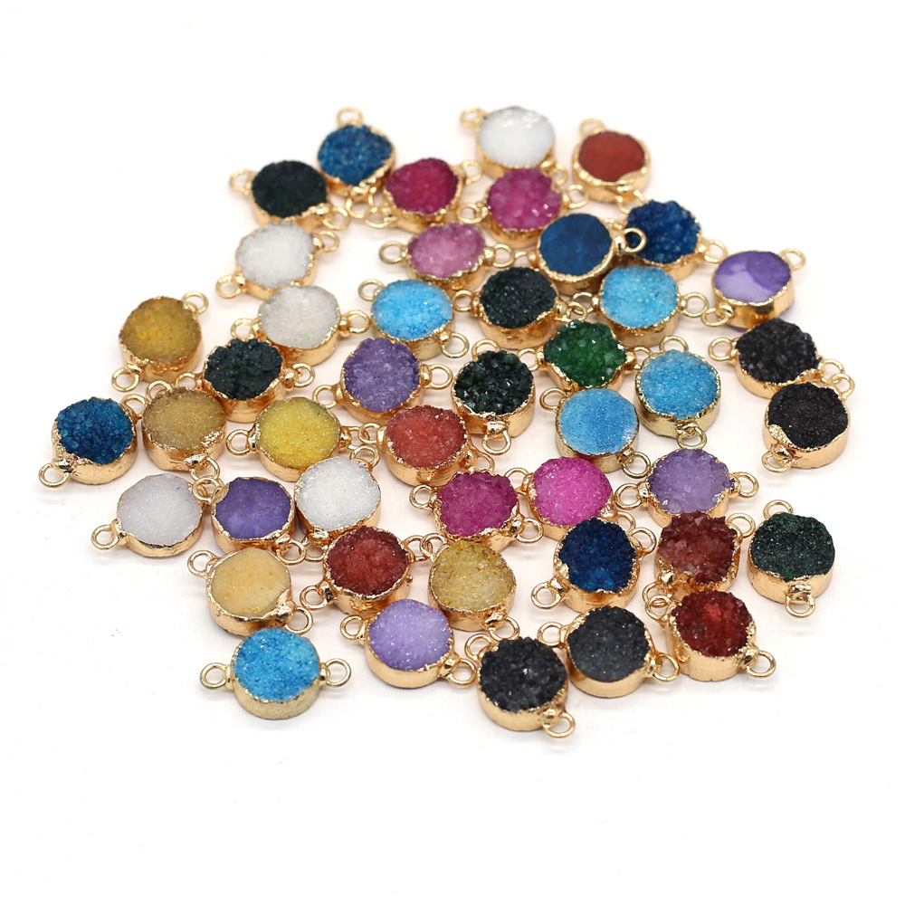 Натуральный камень изысканный круглый Агат хрустальный бутон Позолоченный край Соединитель с ювелирными аксессуарами DIY ручной работы оптом