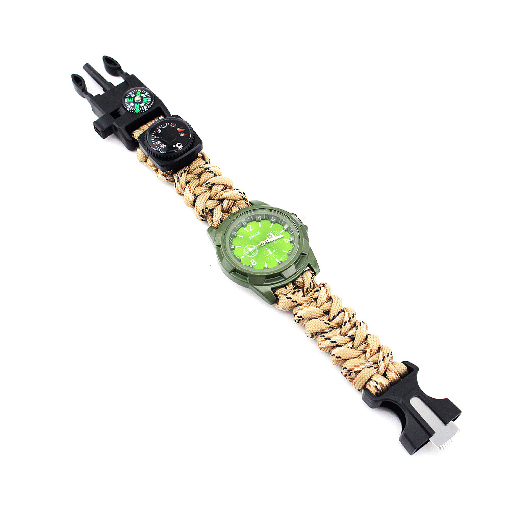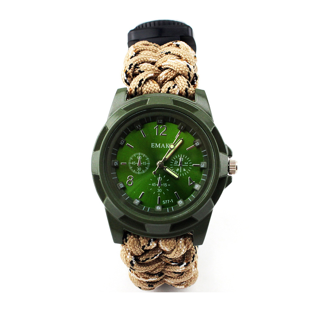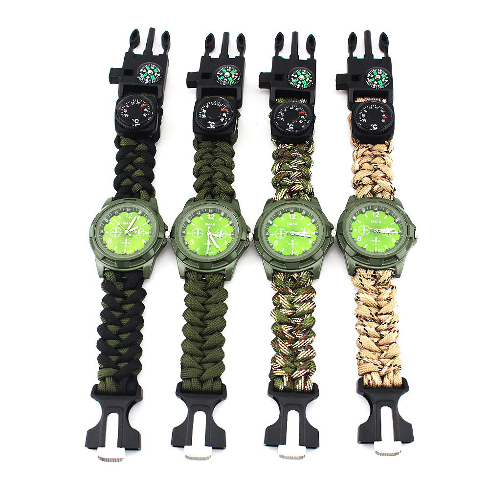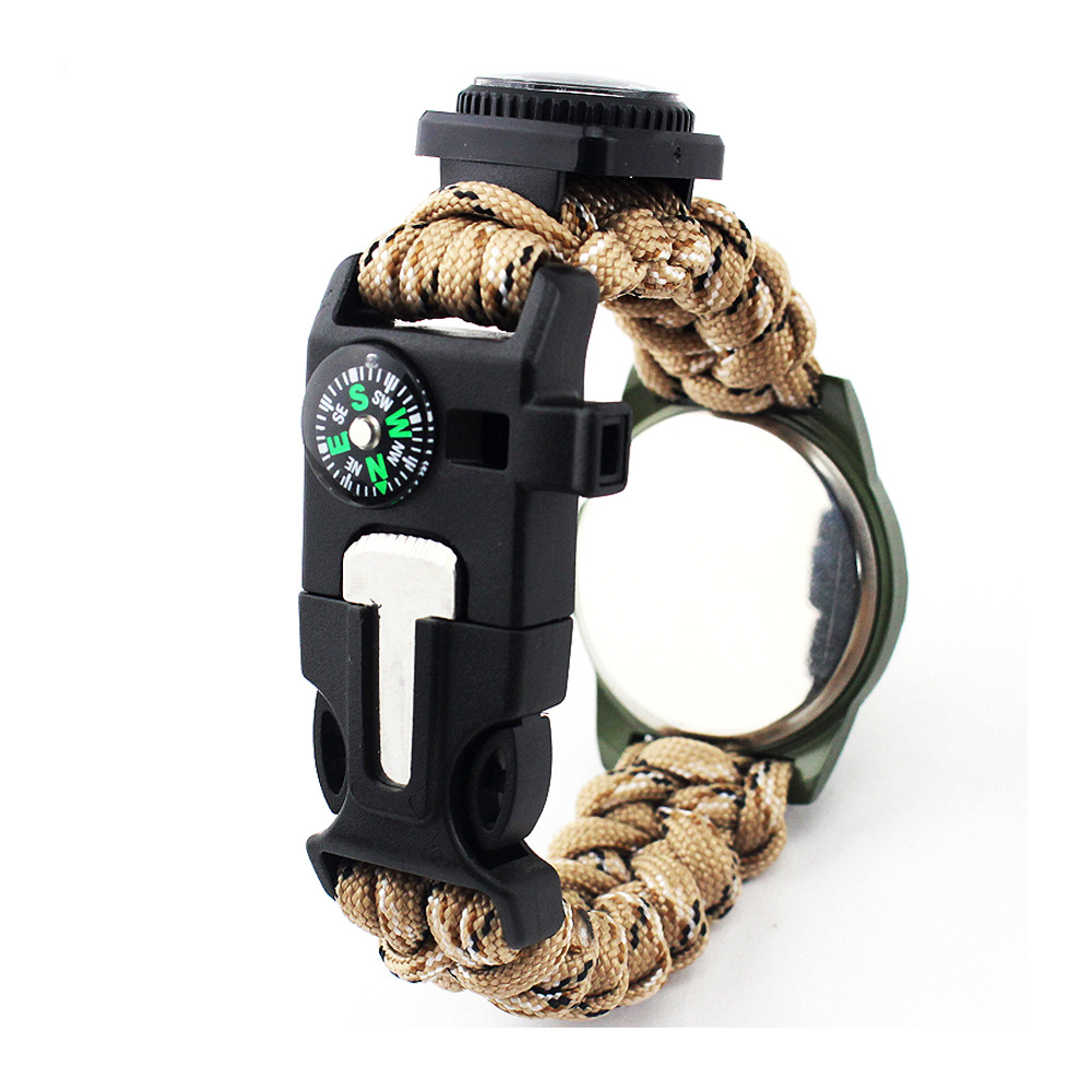 新款军表带打火棒学生复古手表便携指南针圆形温度计户外运动手表