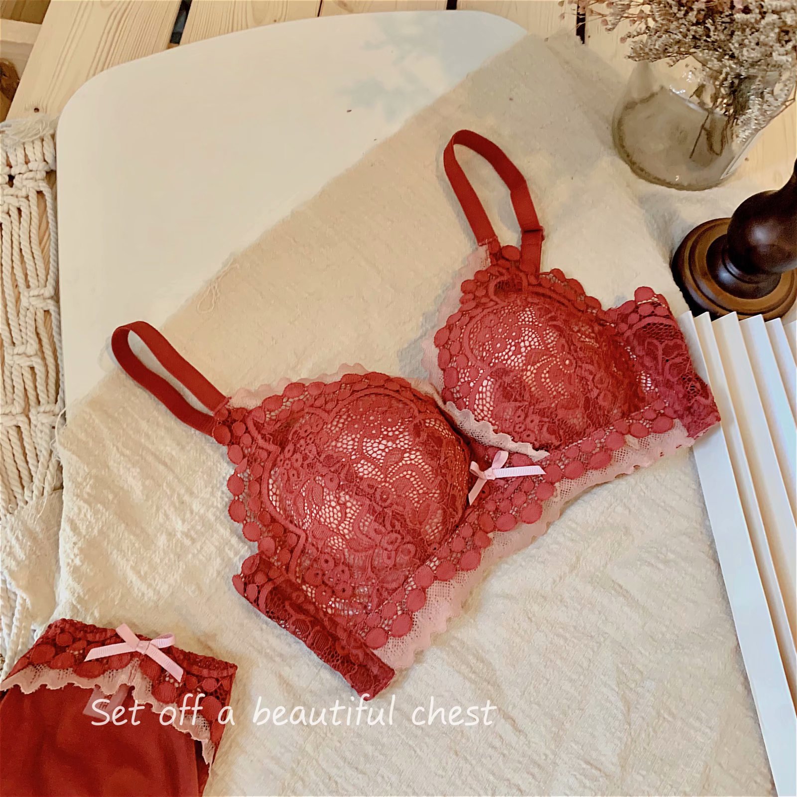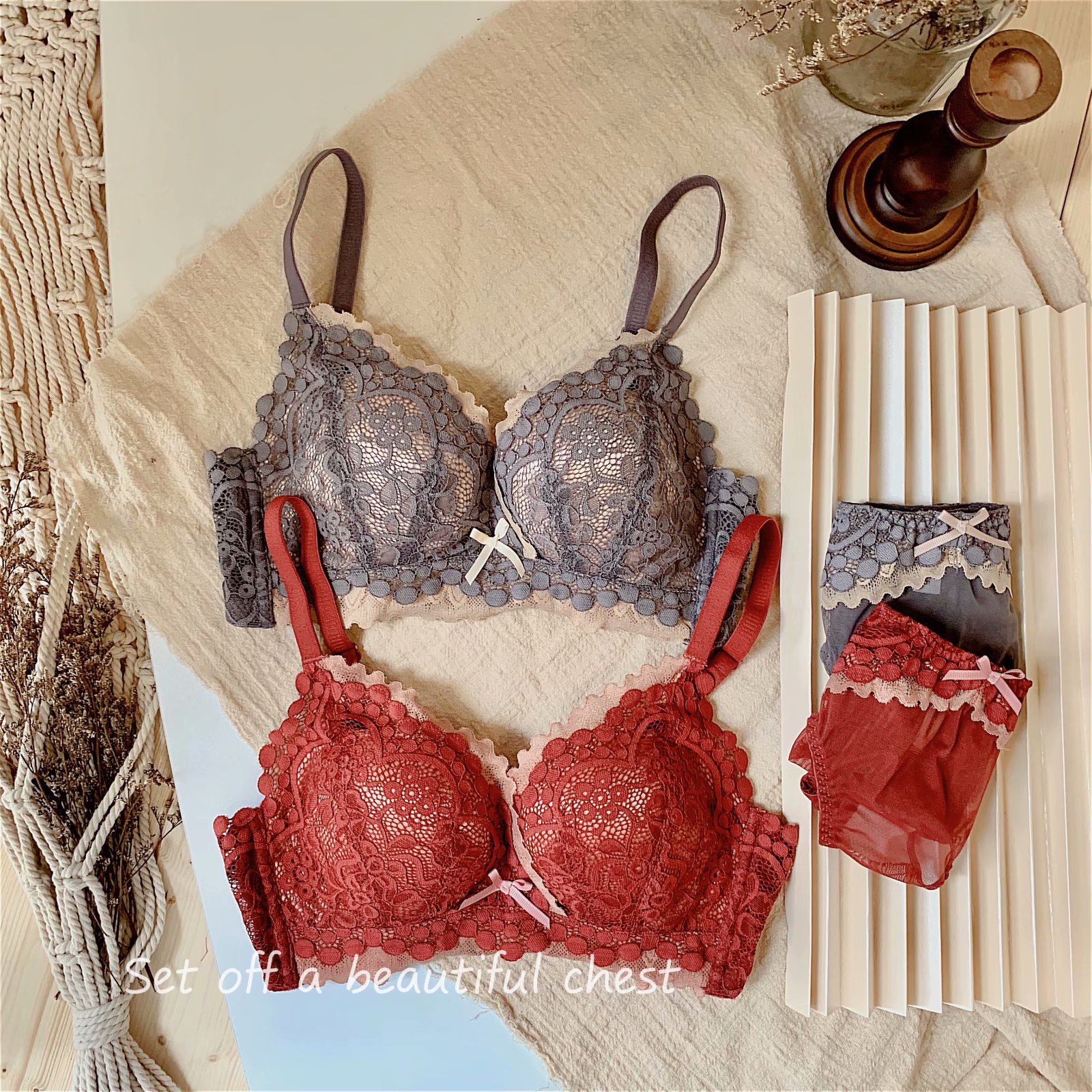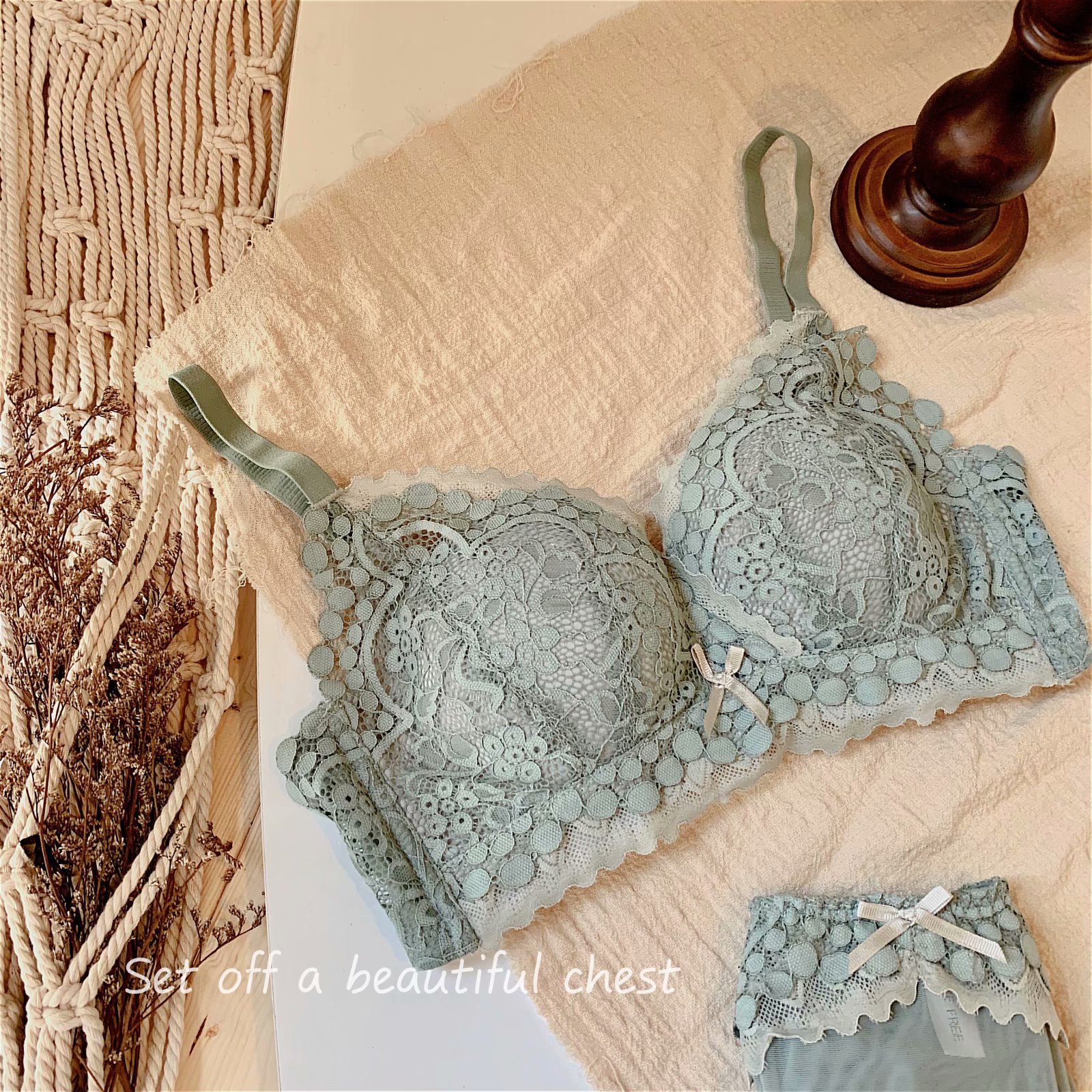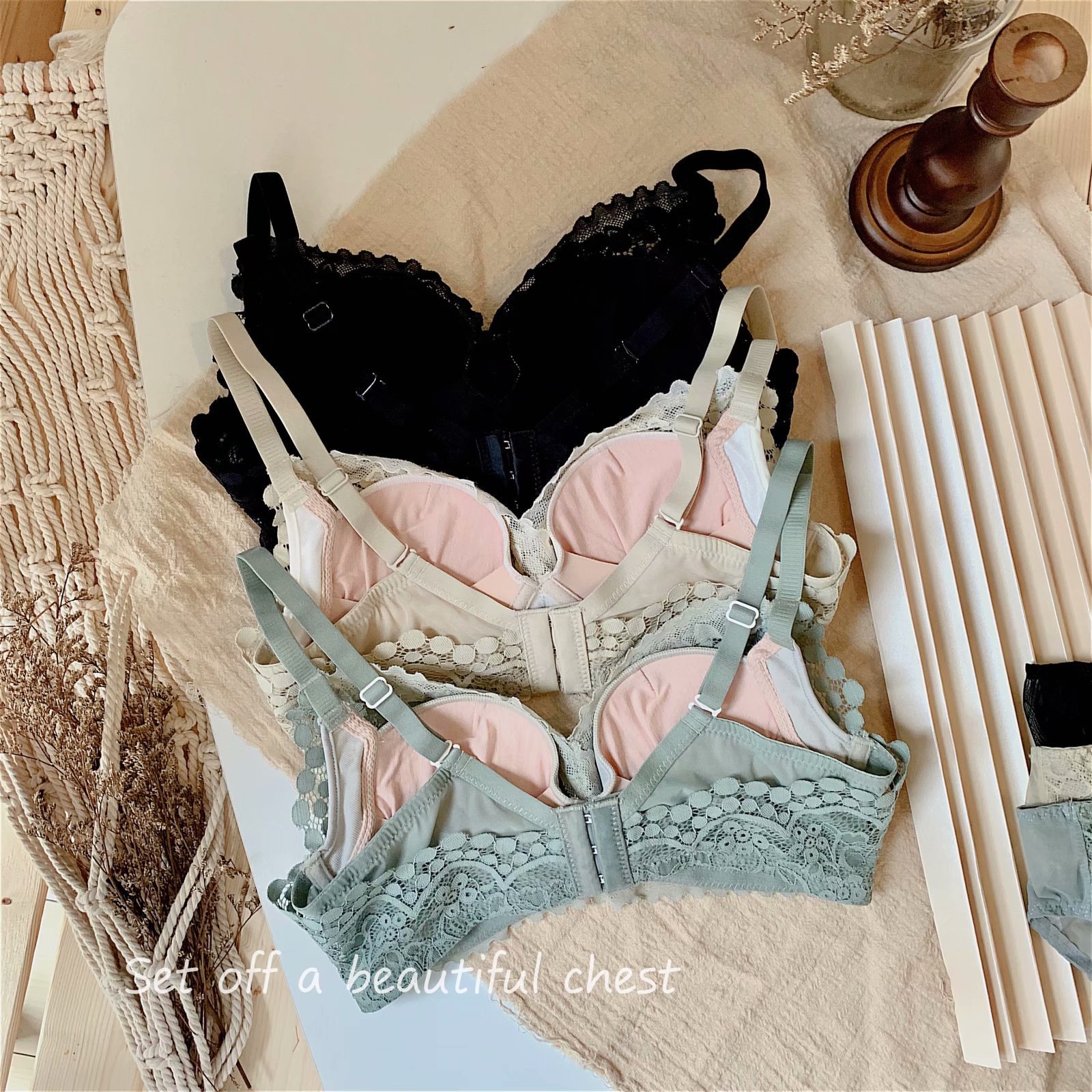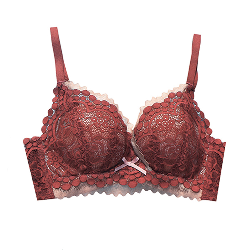 Популярный бюстгальтер Tmall в стиле ретро с кружевным цветочным узором, средней толщины, без косточек, с эффектом пуш-ап, подтягивает и поддерживает боковые части груди, удобный, цельный.