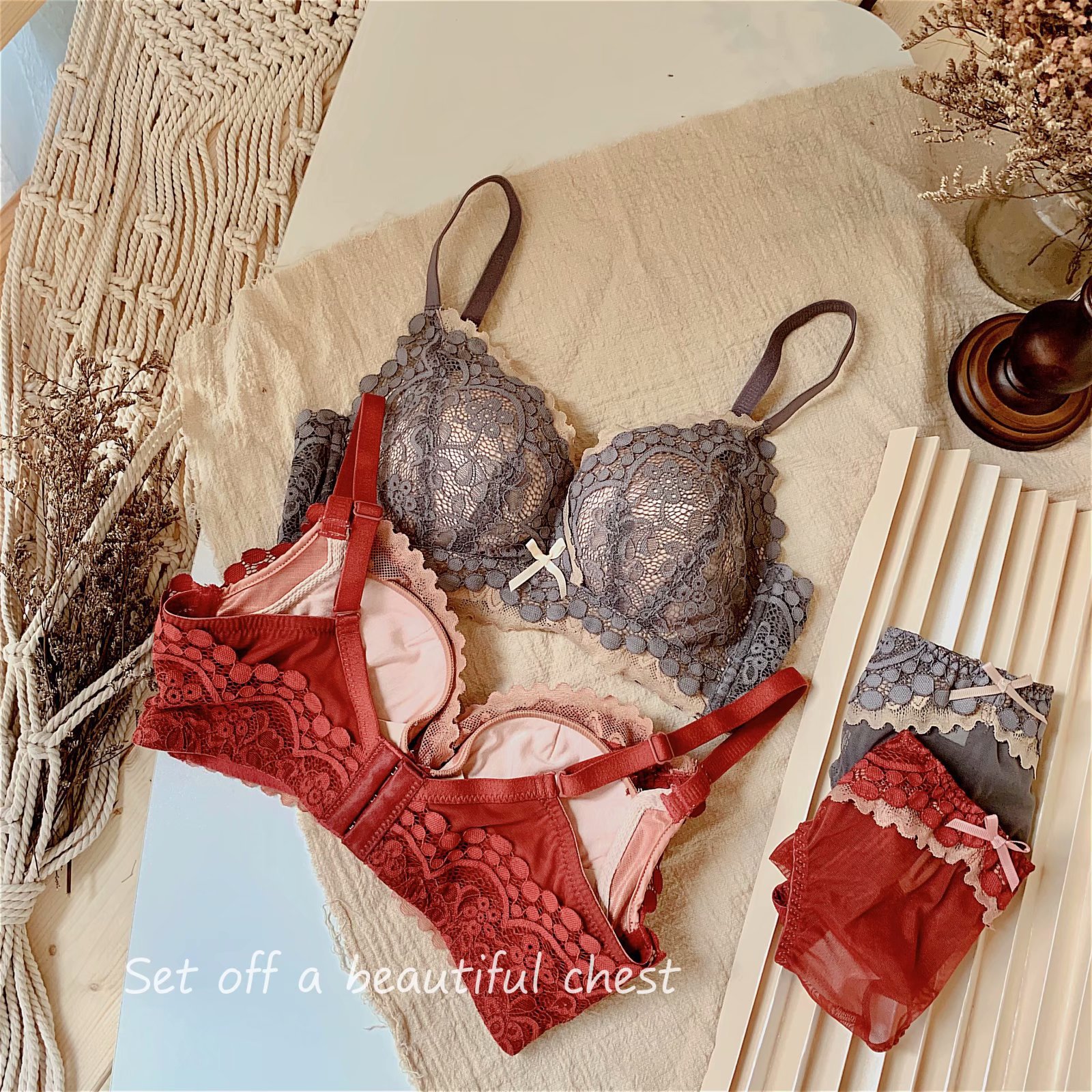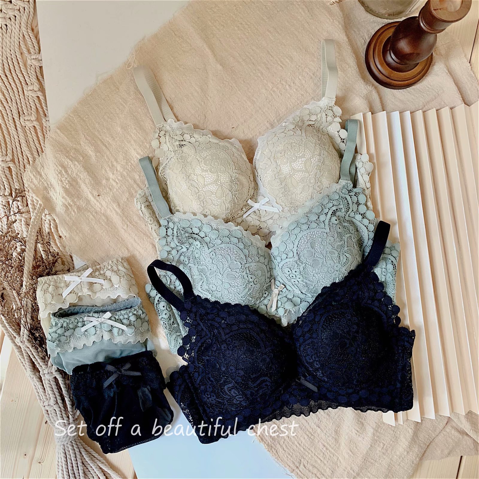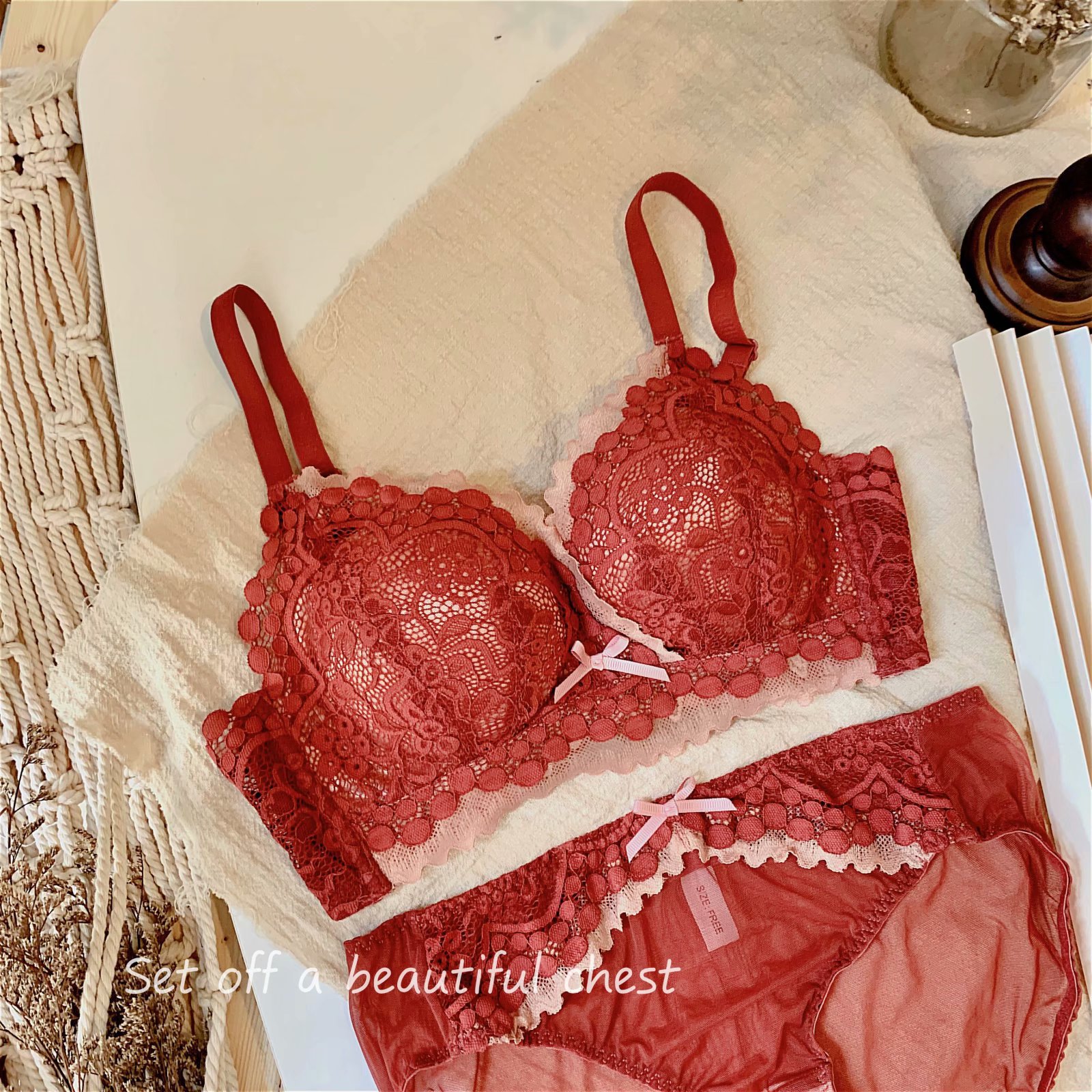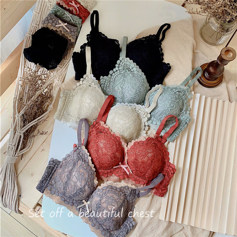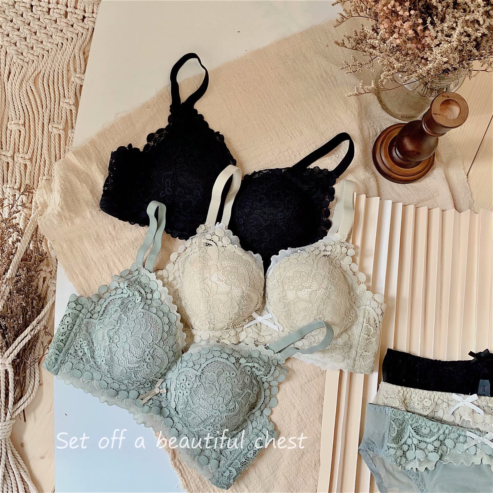 Популярный бюстгальтер Tmall в стиле ретро с кружевным цветочным узором, средней толщины, без косточек, с эффектом пуш-ап, подтягивает и поддерживает боковые части груди, удобный, цельный.
