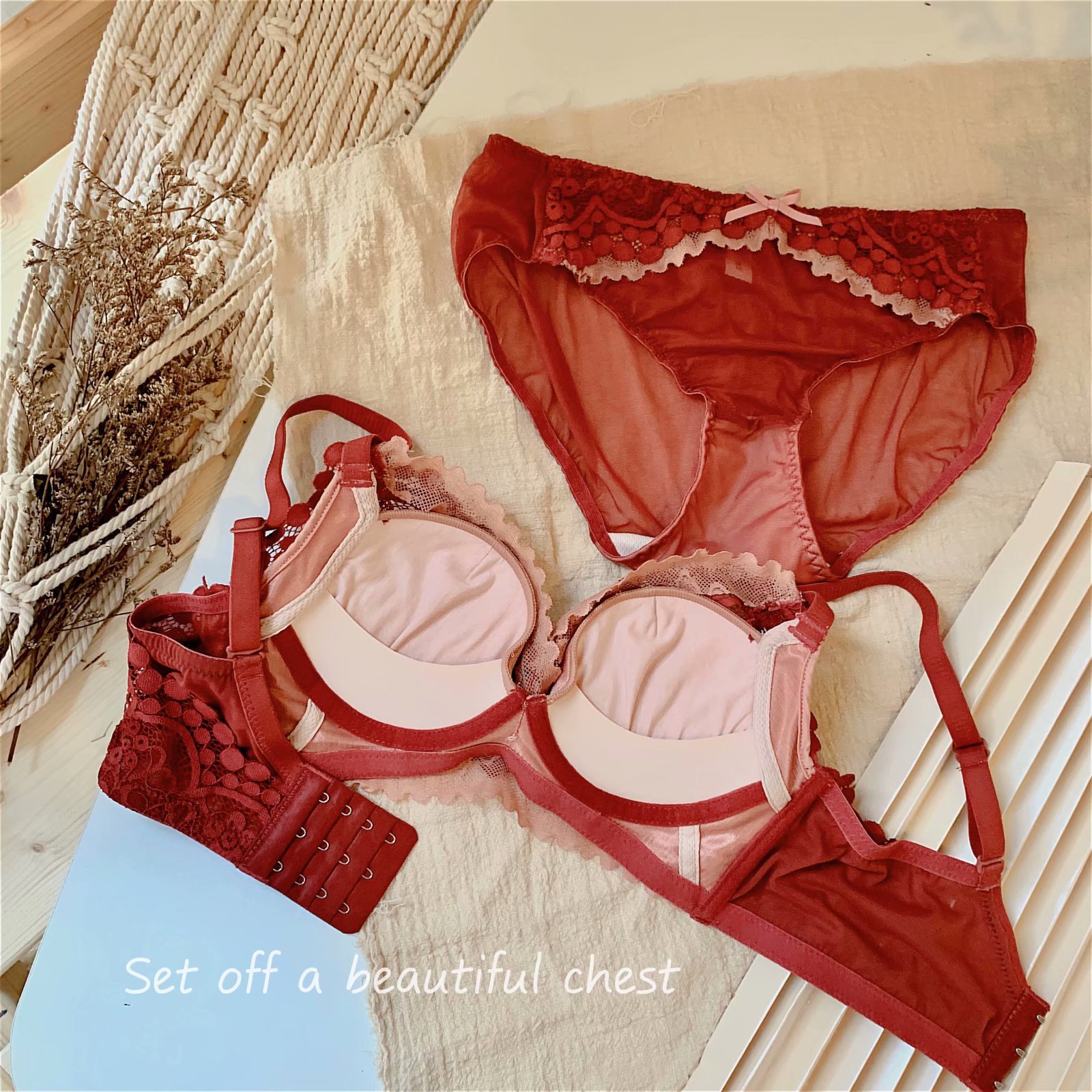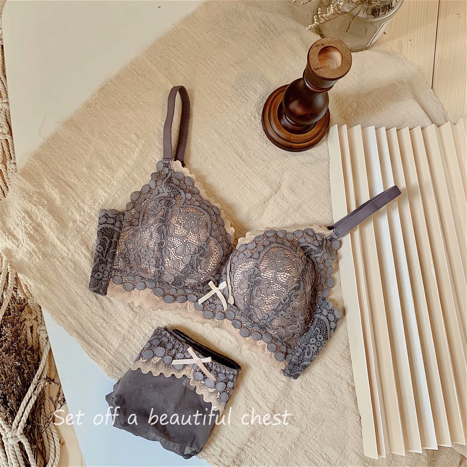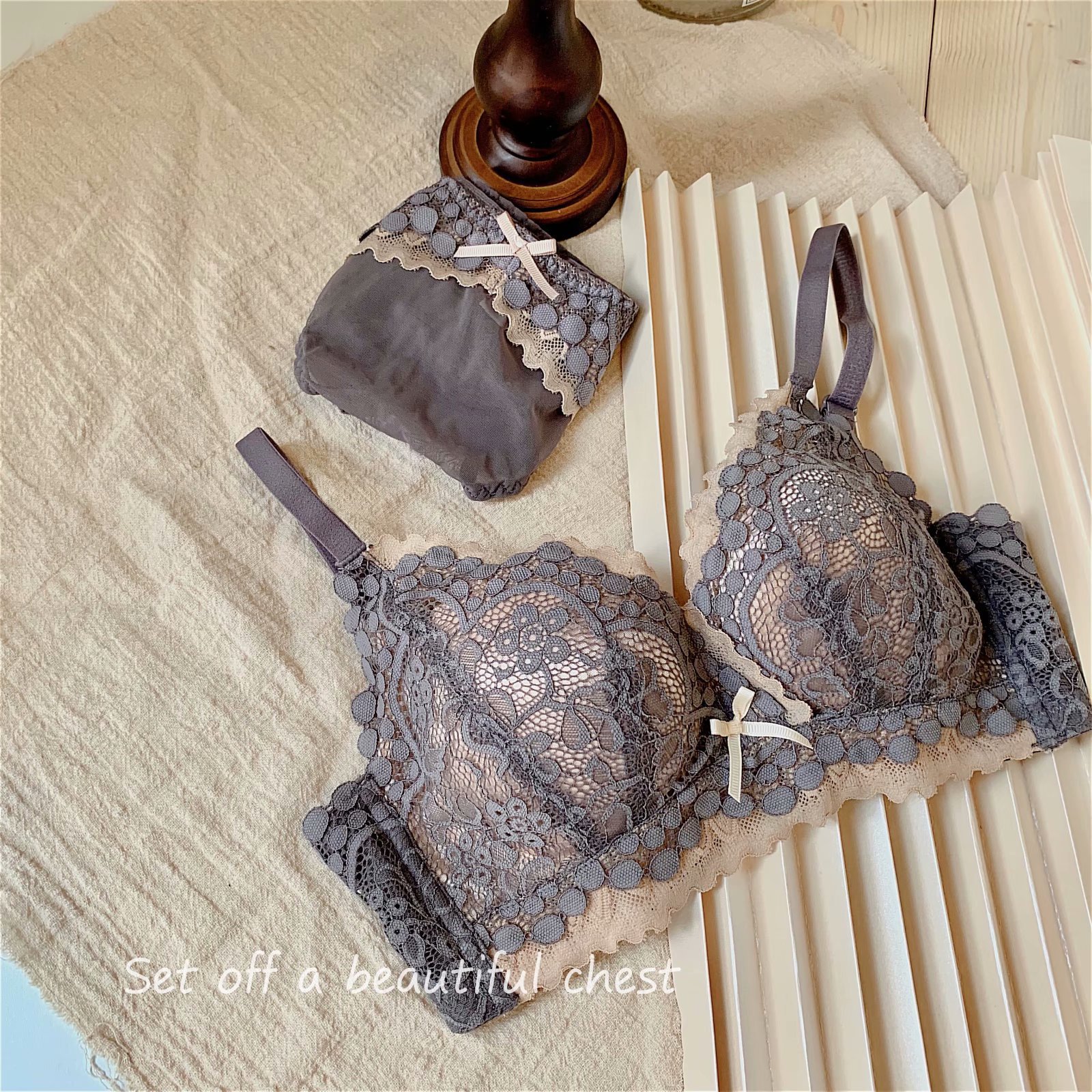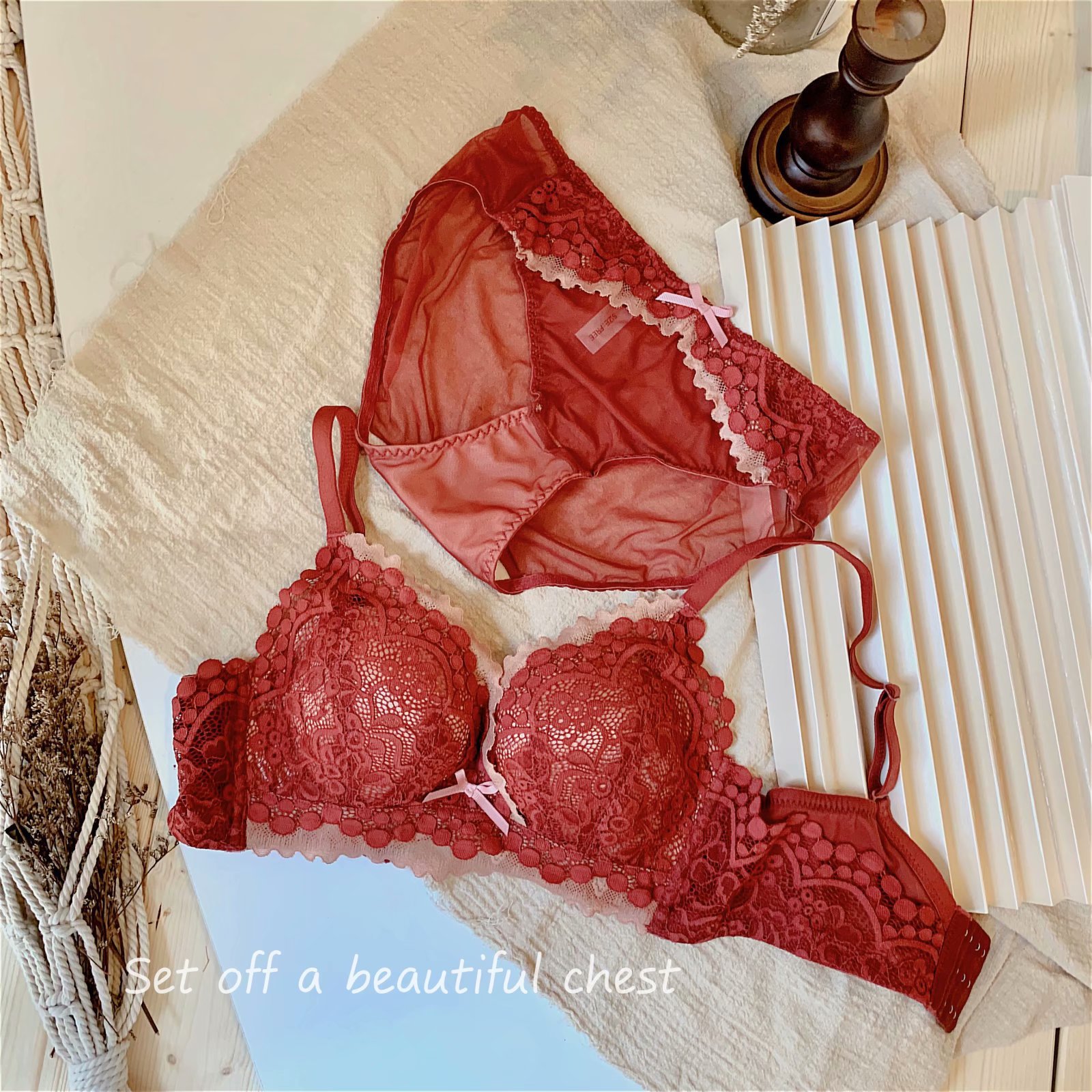 Популярный бюстгальтер Tmall в стиле ретро с кружевным цветочным узором, средней толщины, без косточек, с эффектом пуш-ап, подтягивает и поддерживает боковые части груди, удобный, цельный.