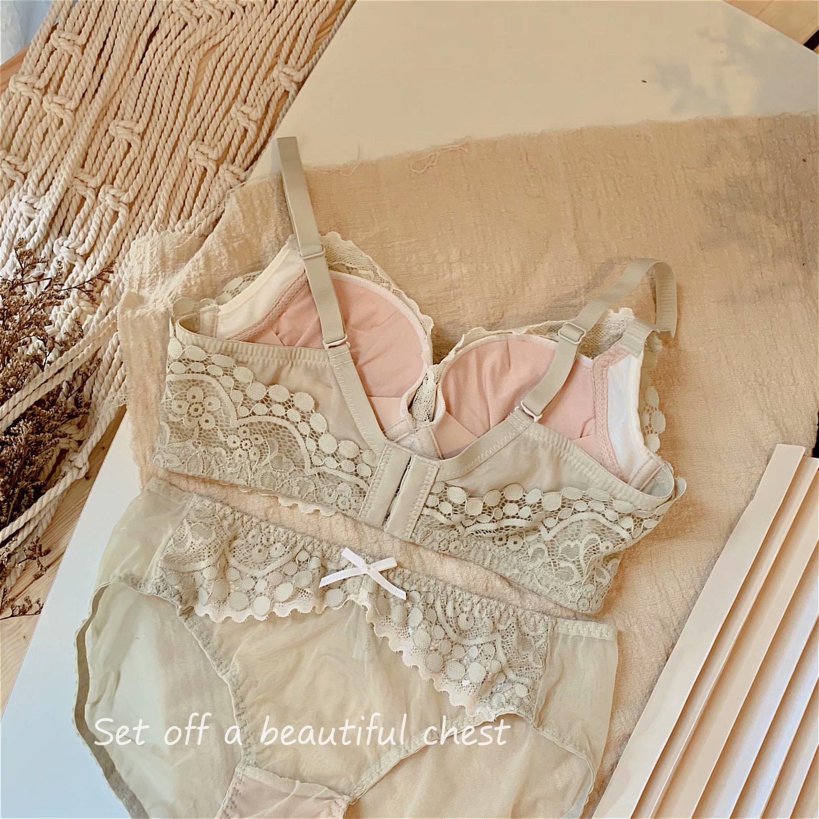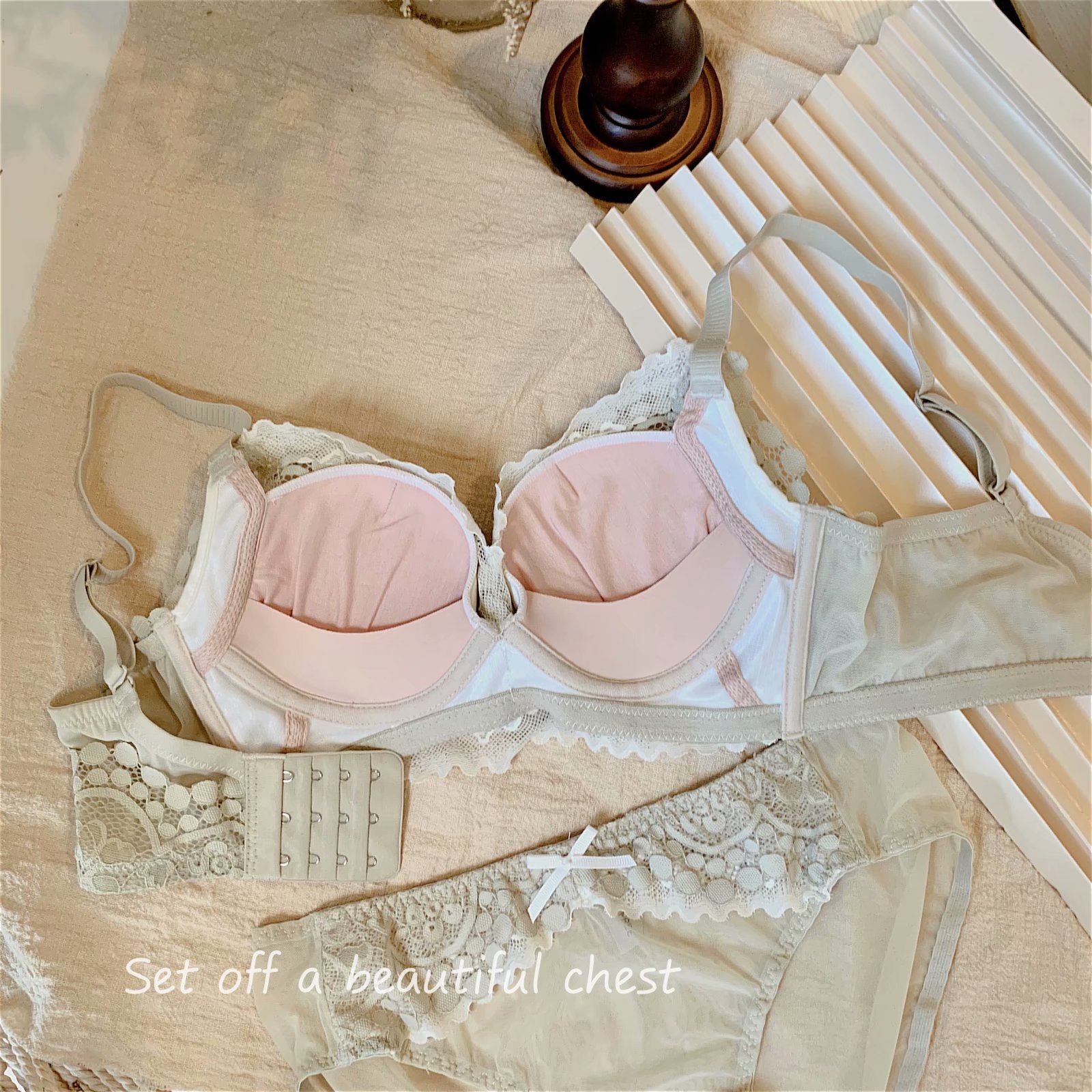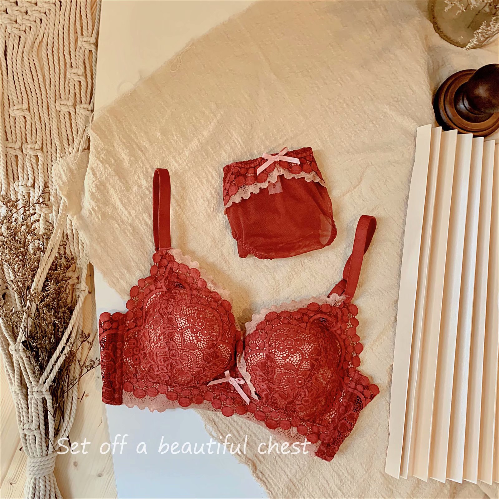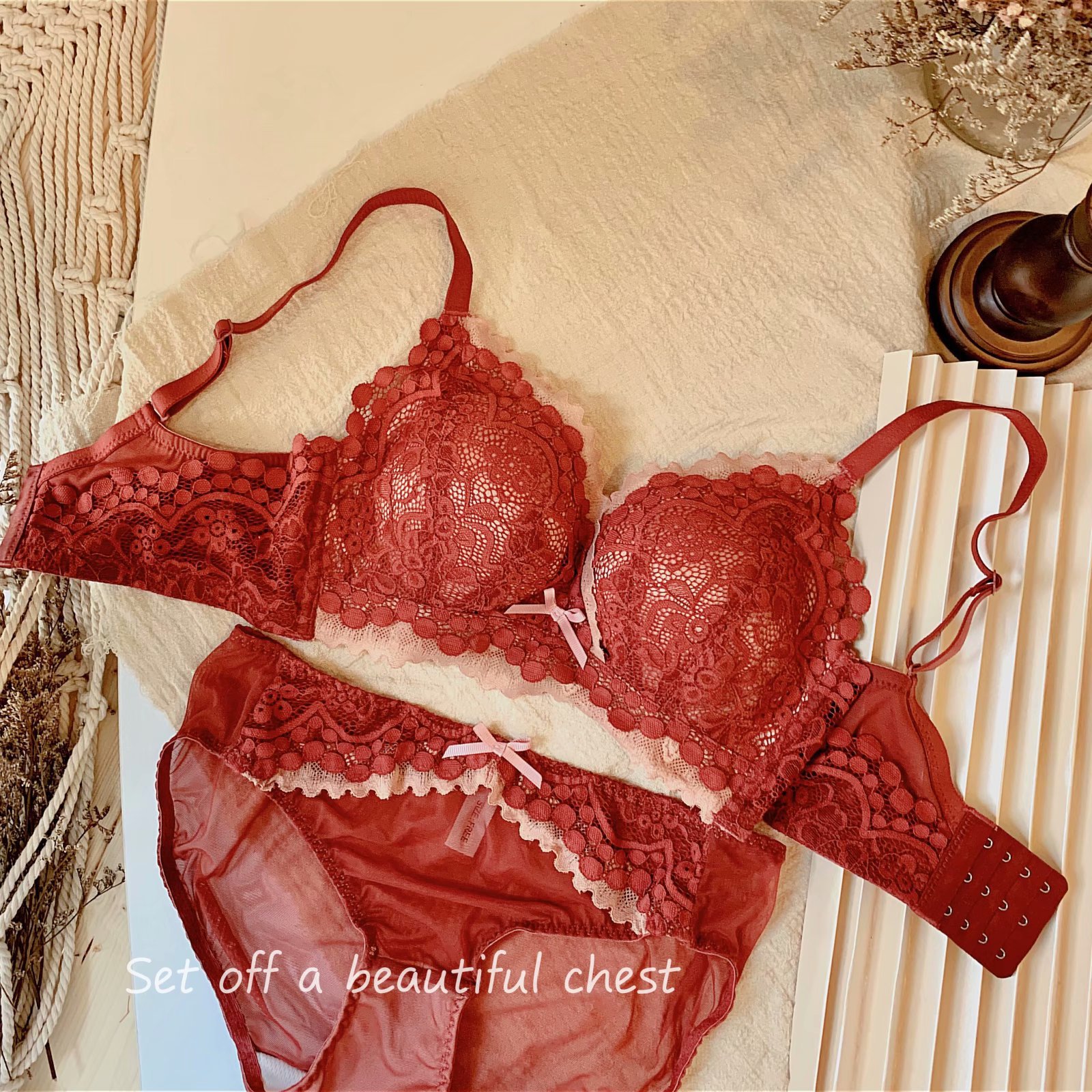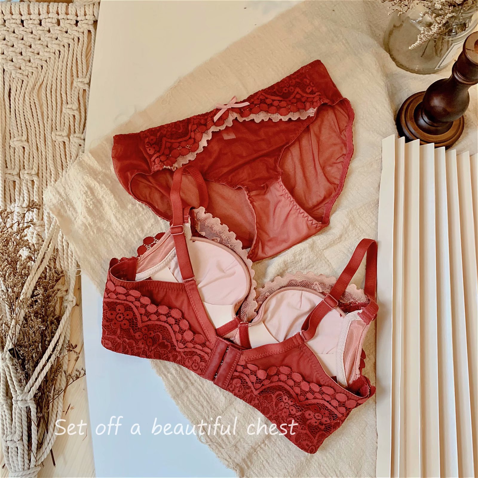 Популярный бюстгальтер Tmall в стиле ретро с кружевным цветочным узором, средней толщины, без косточек, с эффектом пуш-ап, подтягивает и поддерживает боковые части груди, удобный, цельный.