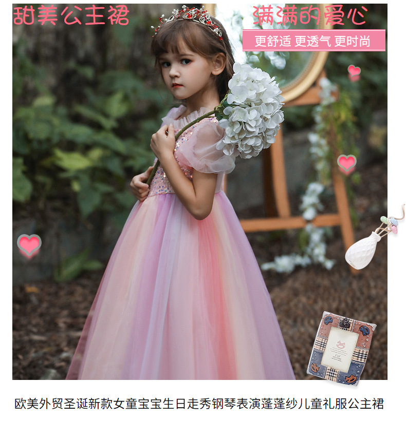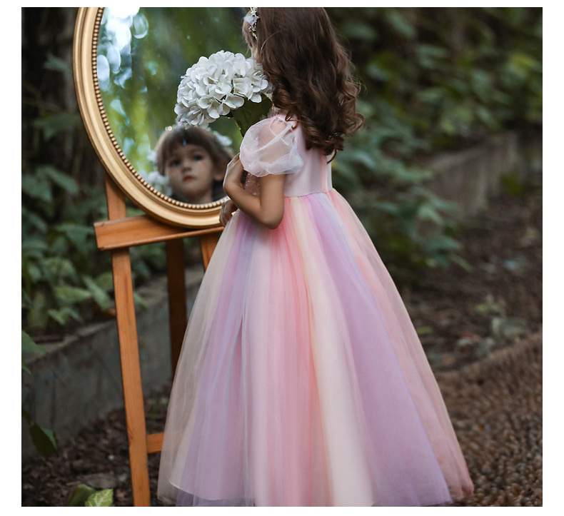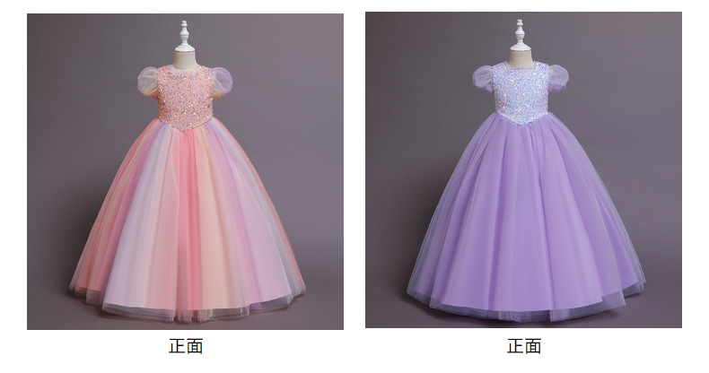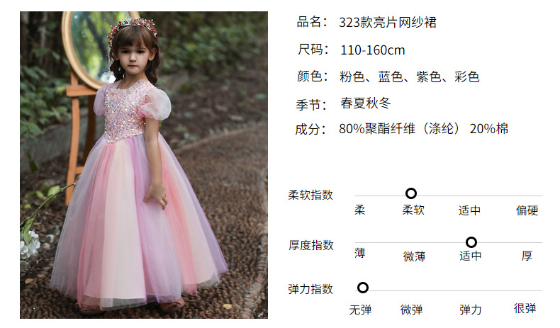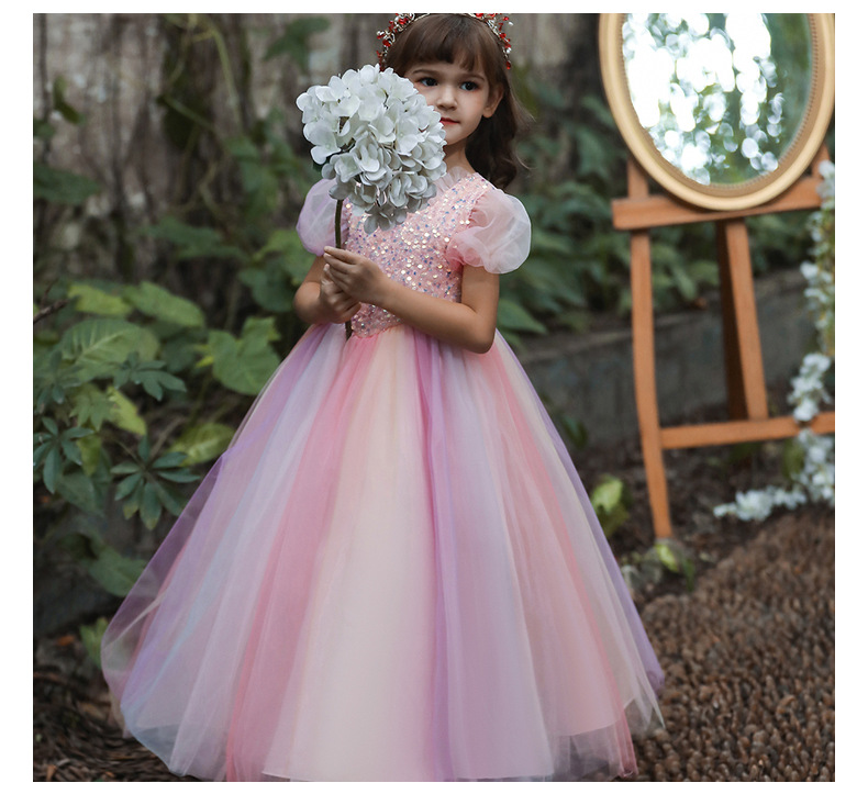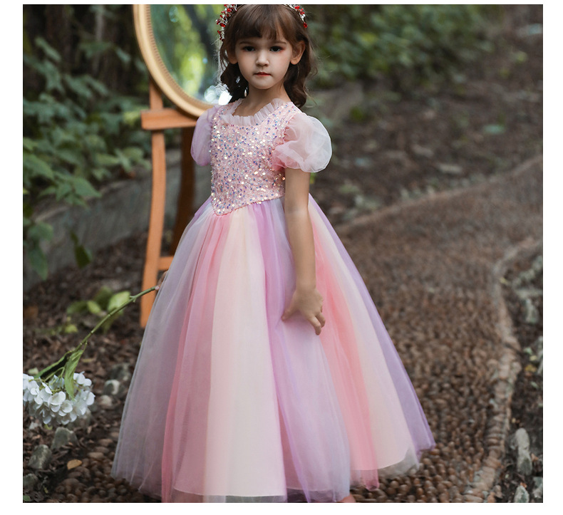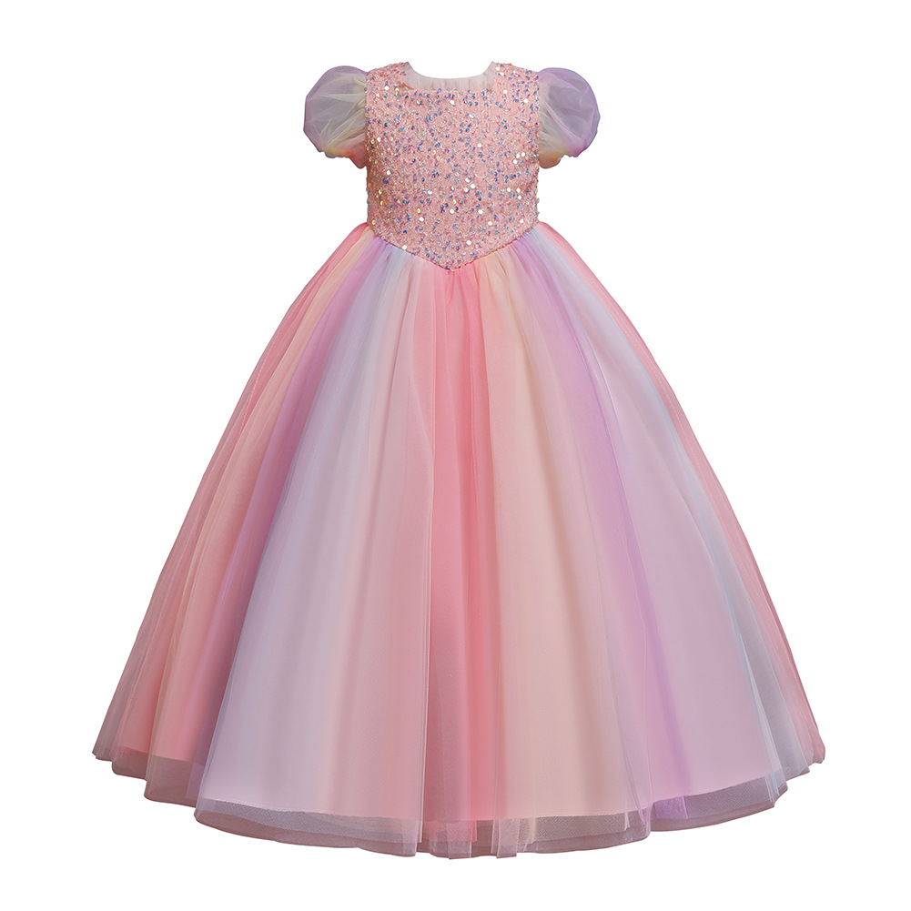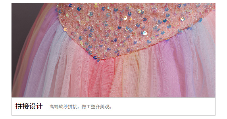 Платье для девочек Amazon, красочное Сетчатое платье, детское платье с длинными блестками, костюм ведущего для девочек